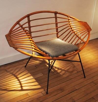 Janine Abraham and Dirk Jan Rol, both born in 1929, met at the École des Arts Décoratifs in 1955, in Jacques Dumond's workshops. From their personal and professional partnership emerged pieces that embodied the spirit of modernity. In the early 1950s, Janine Abraham studied at the Beaux-Arts School and then at the École Camondo. She followed in the footsteps of prominent French designers like Pierre Paulin, who was also a graduate of this school. These creators shared a refined sense of taste and design elegance. Dirk Jan, on the other hand, became familiar with furniture manufacturing techniques in the Faubourg Saint-Antoine before taking courses at the École des Arts Décoratifs. The couple established their agency in 1957, which had a dual focus: one part was dedicated to creating designs for mass production, while the other focused on interior architecture for a clientele of industrialists and merchants. This "two-headed decorator" revealed an incredible creative harmony. While Dirk Jan Rol concentrated on the structural and architectural aspects, Janine Abraham unleashed her imagination, offering a playful and decorative touch. Balancing rigorous design with fluid drawing, their creations continuously earned awards. Just one year after their first exhibition at the Salon des Artistes Décorateurs in 1956, they won a silver medal at the Milan Triennale for a chair featuring a sophisticated aluminum folding technique. Their rattan creations, reminiscent of traditional craftsmanship, encapsulated the essence of their vision: extravagant volumes contrasted with the purity of metal structures.