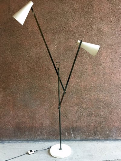 Franco Buzzi was an Italian designer active in the mid-20th century, primarily known for his lighting designs in postwar Italy. He notably collaborated with Oluce, one of the emblematic Italian lighting manufacturers, for whom he developed models with clean and elegant lines. The works attributed to him reflect a distinctly modernist vocabulary, characterized by purity of form, the use of metal structures, and a particular attention to the quality of light. His work belongs to that generation of Italian designers who helped renew lighting design in the 1950s through an approach that was both functional and refined.