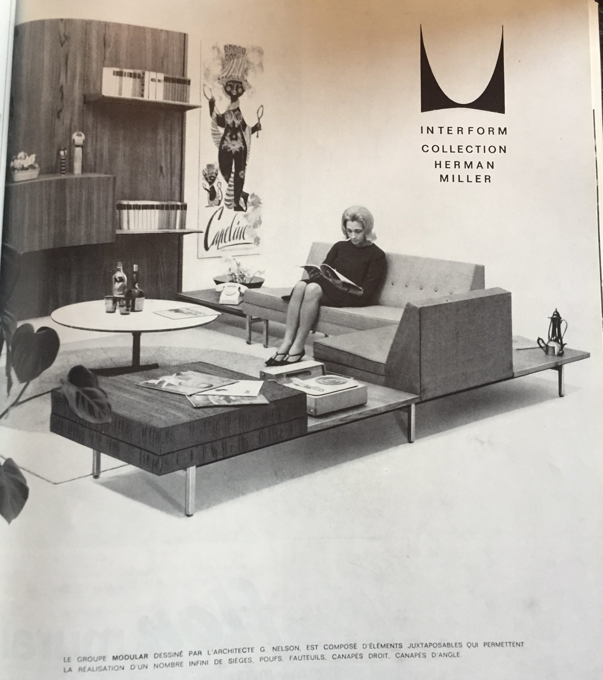 In 1935, Nelson joined Architectural Forum magazine, eventually becoming associate editor. This period proved formative: it broadened his architectural culture, exposed him to the European vanguards, and led him to meet key modernist figures such as Le Corbusier, Mies van der Rohe, and Walter Gropius. His seminal 1945 article Storagewall, which proposed an integrated modular storage system, caught the attention of furniture manufacturer Herman Miller.