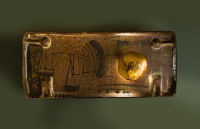 In 1954 he settled in a traditionnal pottery with a large workshop. He developps his own figurative langage, abstract and suggestive, characterised by a great liberty. The use of colors in his creations recall his beginning as a painter. Portanier wishes to translate the feelings and emotions in his ceramic. He is a colorist and a drawing vituoso. His work is marked by opposition from the brightness and a matte enamel on wich he places a decor. In the 80’s he will abandon the white enamel and deepen the oxides work.