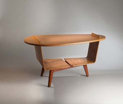 Gustave Gautier is french designer born in 1911 in Nantes. After completing his studies at the Ecole des Beaux Arts de Nantes, he moved up to Paris and registers at the Ecole Nationale Supérieur des Beaux Arts de Paris (architecture section) and becomes close to René Herbst and the principes of the UAM ( Union des Artistes Modernes). After second war, he focuses on the interior decoration. From 1949 he exhibits regularly at the SAD and the SAM. He presents a serie of furniture that you can easily modulate. He promotes tan woods et most of his creations are edited by Rimard and Dumuids. He is mostly interested in new materials like plexiglas and formica. He will arrange a lot of interiors for private clients.