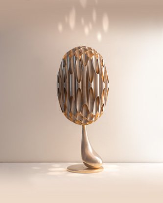 Michel Armand was born on February 12, 1935, in Bordeaux, France, and passed away on January 6, 2015, in Cahors, France. He became known during the 1960s and 1970s as a talented designer specializing in sculptural lamps with organic forms. Deeply inspired by nature, Armand worked with noble materials such as zamak bronze, brass, and nickel to create lighting pieces that resembled mushrooms, flowers, flames, or hives. His most iconic creation, the “Morille” lamp (circa 1970), stands out for its slender bronze stem and distinctive shade made of golden brass tubes arranged in a fan shape, standing approximately 78 cm tall. These exceptional pieces were produced in very limited numbers by Atelier Michel Armand Inc., a studio based in Montreal between 1978 and 1986, originally led by Robert Martin and Michel Dumas. Today, Armand's lamps—especially the Morille—are highly sought after by collectors of mid-century modern design.