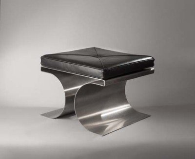 Michel Boyer’s style is immediately recognizable for its architectural rigor and subtle interplay of solids and voids. Influenced by the core principles of modernism, he adopted a sleek and functional aesthetic, using the industrial materials of his time: stainless steel, post-formed laminate, fiberglass, and lacquer. His creations are characterized by a search for balance and solidity, blending geometric shapes with contrasting textures. Among his iconic pieces from the 1970s are linear lounge chairs covered in foam, a metal tube and leather bolster armchair, and the famous steel stools, the first of which was covered in leopard skin by the antique dealer Haguenauer.