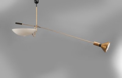 Particularly active during this period, Torlasco created lamps, wall sconces, and floor lamps. He experimented with a variety of materials, including lacquered metal, marble, crystal, and brass. His eclectic style ranges from Italian Art Deco to more industrial and Space Age aesthetics. He is also known for his lighting designs incorporating lenses, one of his signature elements. In 1959, he was awarded the Compasso d’Oro for his Genova 4053 model.