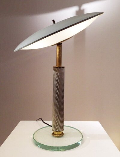 Milan, 1892- Paris, 1948 After having studied at the Academie des Beaux Arts of Brera Pietro Chiesa became an apprentice in the Gianotti glass studio and in 1921 opened his own glass studio, Bottega di Pietro Chiesa. The finesse of his work which allied modernity and his own personal talent permitted him to participate in major art events such as the Biennale of Monza, the Biennale of Venice, the Decorative Arts Exposition of Paris (1925) and in other various expositions in Barcelona and Cologne. It was in 1932 that Gio Ponti asked him to share the artistic direction of the young company Fontana Arte, where until the end of his life he was able to express his creative genius and to design pieces that in our age would become icons such as the Fontana table in curved glass (1932) and the Luminator floor lamp (1933).