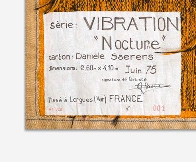 Danièle Raimbault Saerens est née en 1936 à Haudoubin dans le Nord. Elle effectue ses études à Paris et obtient le professorat de dessin. Elle s’intéresse au dessin et à la peinture qu’elle pratique depuis 1958. En 1962 elle commence à travailler le textile, autodidacte son travail volontiers à contre courant se caractérise par la recherche de techniques nouvelles. Elle a également la particularité de tisser elle même ses œuvres. En 1965 elle est accueillie dans le groupe « Tapisserie de notre temps ». Elle exposera notamment en Allemagne, aux USA, en Suède, en Belgique… Danièle Raimbault Saerens réalisera notamment des pièces monumentales souvent dans le cadre des 1% dédiés à l’art comme pour l’aéroport de Cannes, les agences BNP de Marseille, Cannes, Nice et Lyon et plusieurs projets pour la Défense, Paris. Certaines de ces pièces sont encore en place. C’est également dans le cadre de projets architecturaux qu’elle réalisera des mosaïques de grande tailles.