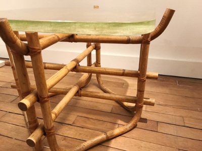 Gilles Sermadiras est un créateur français actif dans les années 1950, principalement connu pour ses modèles édités par Maison et Jardin. Son travail se distingue notamment par d’élégantes créations en rotin et bambou, où la légèreté des matériaux naturels rencontre une ligne moderniste sobre et raffinée. Fauteuils, sièges et mobilier de jardin témoignent d’un vocabulaire décoratif caractéristique du goût français de l’après-guerre.