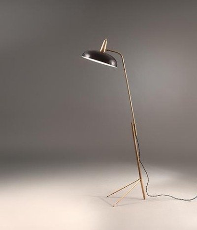 Le modèle 326, conçu dans la même décennie, associe le laiton, le bois et le tissu dans une élégance rare, et illustre son souci d’harmoniser chaleur et rigueur.