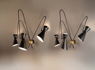 Parmi leurs réalisations majeures, on retrouve la suspension à bras multiples en laiton et métal laqué, les sphères lumineuses inspirées du Sputnik, ou encore leurs appliques graphiques jouant avec ombre et découpe. Ces pièces, pensées pour les intérieurs modernes comme pour les espaces publics, incarnent l’élan créatif des années 1950 et confirment la place de Kobis & Lorence parmi les acteurs majeurs du luminaire français d’après-guerre.