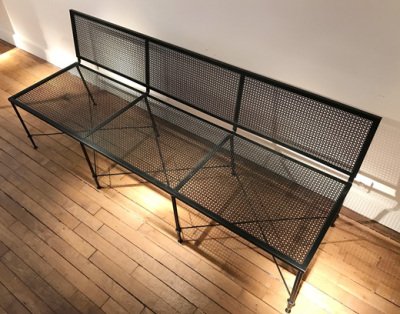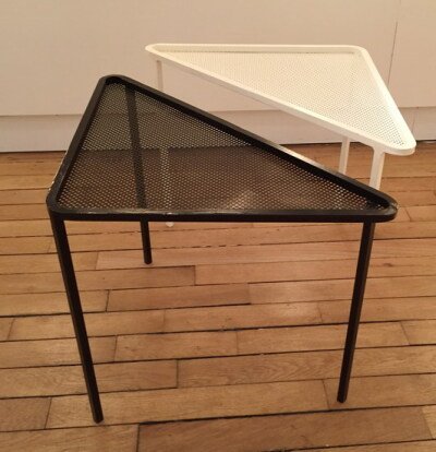 Designer hongrois/français, Mathieu Matégot (1910-2001) est un créateur d’origine hongroise, naturalisé français en 1945. Après des études à l’école des Beaux Arts de Budapest et une formation à l’académie Janeck, Mathieu Matégot travaille comme décorateur de théâtre. Il s’installe en France en 1931 et débute sa carrière en tant qu’étalagiste aux Galeries Lafayette. Très vite, son intérêt croissant pour la tapisserie l’amène à rencontrer les acteurs de ce milieu. Il se lie alors d’amitié avec Jean Lurçat. Engagé durant la guerre, il travaille dans une usine à pignons. Grâce à son imagination et sa créativité, il est rapidement affecté à un bureau de dessin. Cette position autorisant une plus grande liberté lui permet de s’évader. De retour à Paris, il réalise de nombreux cartons de tapisseries. Matégot participe activement au renouveau de cet artisanat. Il est à l’origine d’un procédé de piqué permettant l’impression de vibrations des couleurs. Malgré son amour pour cette discipline, il la délaisse dans les années 1970 au profit de la peinture, déçu par le peu d’intérêt porté par le public. Mathieu Matégot est aussi reconnu comme ensemblier-décorateur. Son utilisation de la tôle perforée semble quelque peu empirique à ses débuts. Assemblages et pliages élégants, équilibre des volumes, densité visuelle, participent à l’élaboration d’un système formel savant. De l’utilisation de la couleur dans ses intérieurs émane une certaine poésie. Les néologismes formés pour nommer ses créations, à l’instar du Rigitulle ou Rigibande, reflètent la légèreté et la grâce de ses oeuvres.