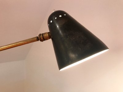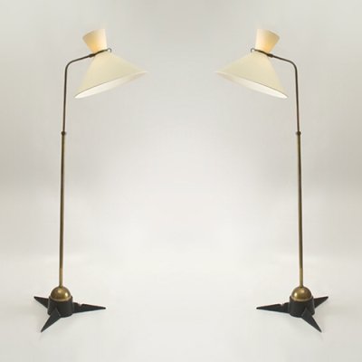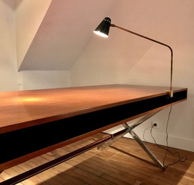 Robert Mathieu (1921- 2002) est l’un des créateurs et producteurs de luminaires les plus talentueux des années 1950. Il fréquente l’école Boulle avant d’entamer une carrière d’horloger en 1938. En 1949, il débute sa création de luminaires au 98 boulevard Charonne qui restera sa boutique phare. Ses premières pièces rivalisent d’ingéniosité et sont empreintes de sa formation initiale en horlogerie. Robert Mathieu connaît plusieurs évolutions dans son style mais reste néanmoins attaché à produire des luminaires d’une haute précision. Travaillant régulièrement pour des commandes privées, ses pièces ont un caractère unique et inédit. Il privilégie les lignes épurées et souples qui confèrent à ses créations élégance et légèreté. En 1955, il achète l’enseigne « LE LUMINAIRE PARISIEN » à René Mathieu et se retrouve à la tête de trois établissements dans Paris. Voyant son activité évoluer et s’amplifier il est même forcé de trouver de nouveaux locaux à Bagnolet. Sa première période de production (1950-1951) révèle une véritable finesse d’exécution. Les tiges en laiton doré ainsi que le système de double abat-jour sont des éléments reconnaissables de cette période. A partir de 1953, Robert Mathieu crée des appliques et plafonniers aux réflecteurs en perspex ou en aluminium laqué. La fin des années 50 est marquée par l’utilisation des contrepoids. Derniers luminaires très épurés avant le changement radical de style dans les années 60. Sous le nom de « R. Mathieu Luminaires Rationnels » il édite des luminaires pour de grands designers dont Michel Buffet. Sa rencontre avec Jean-Boris Lacroix l’inspire également dans son travail. Il collabore avec lui pour différents projets. Ses plus grandes commandes lui sont faites par Le Grand Hôtel du Louvre et l’Hôtel Concorde Lafayette pour lesquelles il réalise une tête de lit lumineuse et des miroirs éclairants. Il cesse son activité en 1978. Ses productions sont distribuées en France, en Algérie et au Maroc par ses camarades de l’école Boulle devenus décorateurs, parmi eux René Fray ou André Beaudoin.