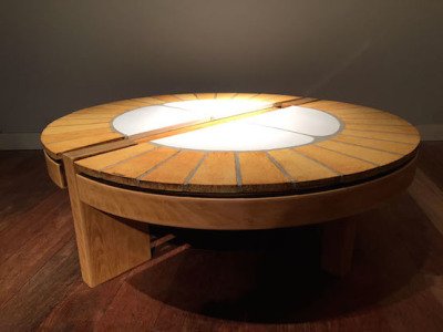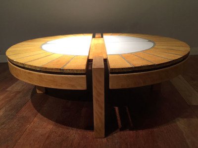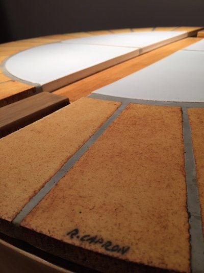 production de carrelages et panneaux décoratifs. Il abandonne alors progressivement les pièces de formes pour les travaux architecturaux et trouve là une manière de conjuguer la fabrication industrielle et la recherche artistique. Animaux stylisés, soleils, motifs géométriques… le vocabulaire formel de Roger Capron envahit peu à peu, par jeu de savants assemblages, mobilier et fresques architecturales.