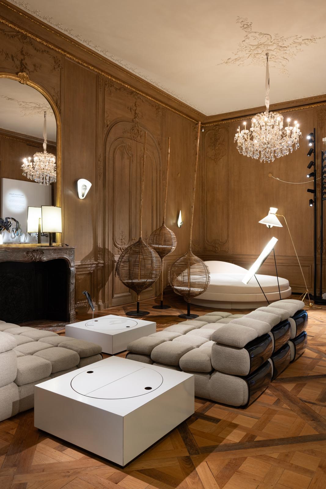 La galerie présente une sélection de luminaires des années 50 et 60 ainsi qu ' un exceptionnel ensemble d'assises de Michel Ducaroy, pièces uniques ou prototypes issus de la collection personnelle du créateur.