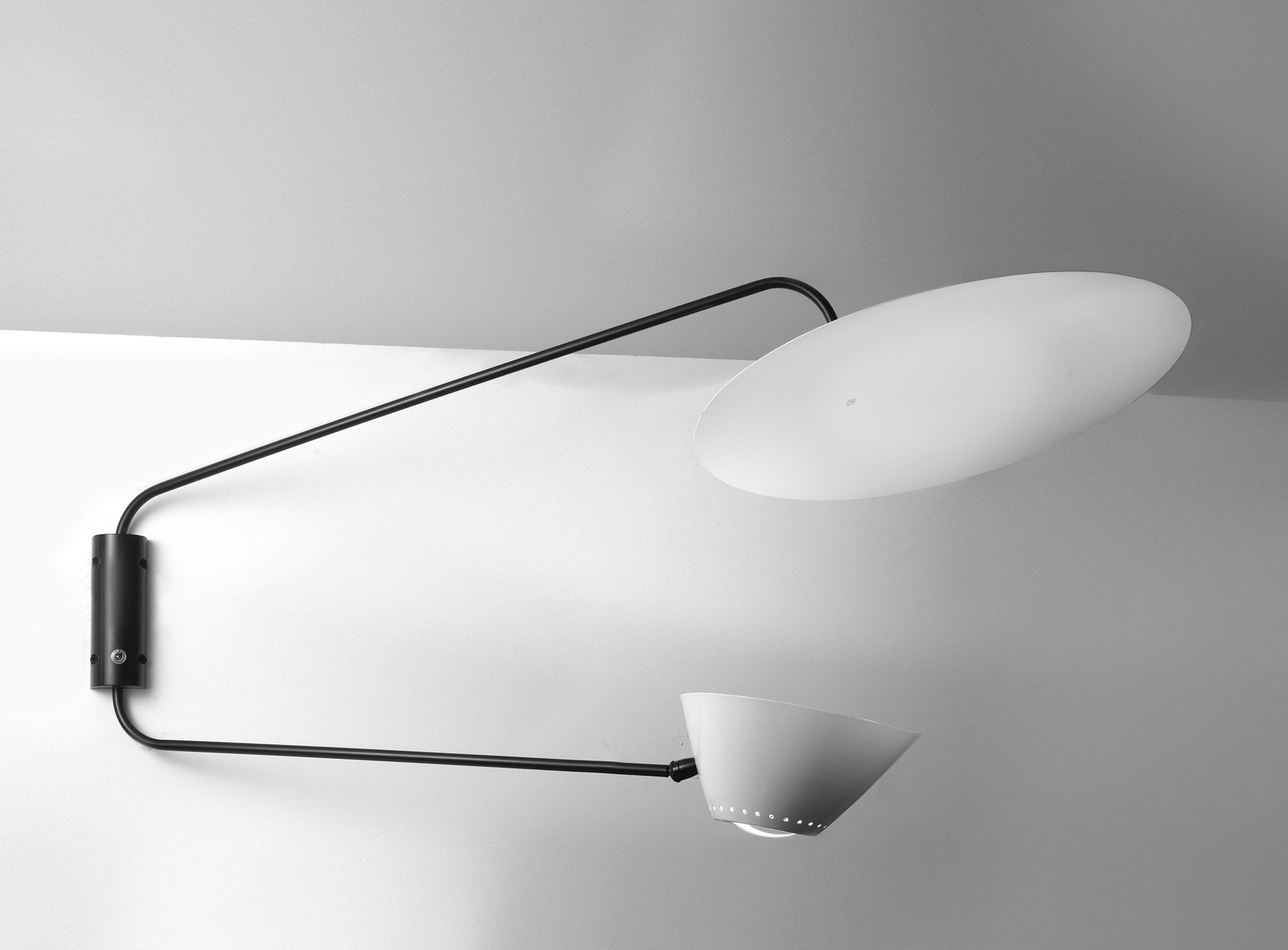 Applique blanche à double bras et réflecteur de Robert Mathieu