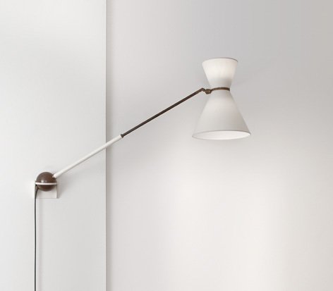 Laiton, métal laqué et abat-jour tissu.