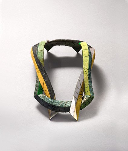 crapaud, veau, nacre imprimé, carpe, fourre de veau, nacre, corne, plexiglas, laiton,