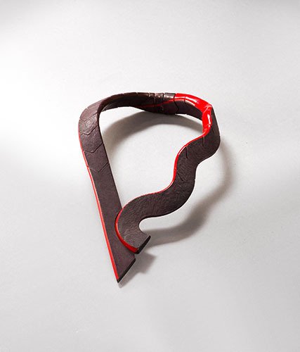 Cuir, galuchat de roussette, plexiglas, laiton.
