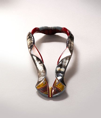 Cuir, jaspe, corne, nacre, plexiglas, laiton, carbonne