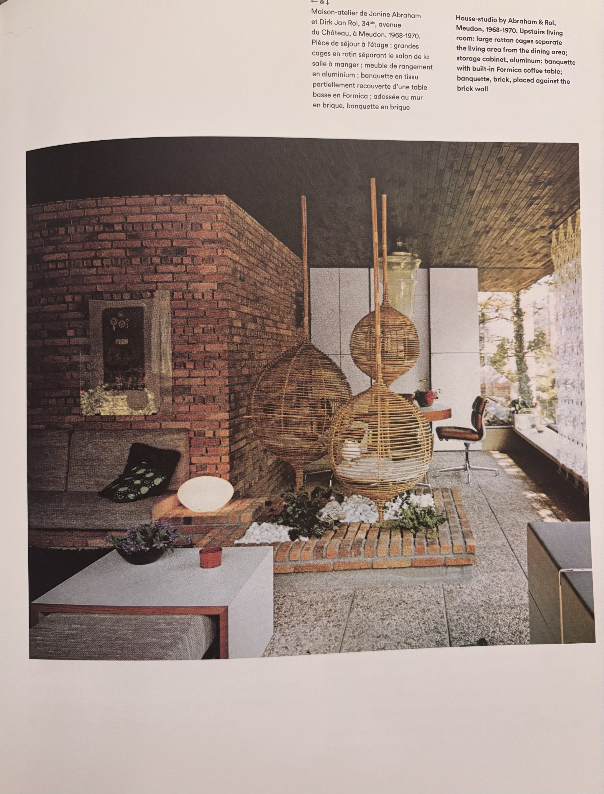 Leur œuvre ne se limita pas au mobilier. Ils réalisèrent de nombreuses maisons privées, principalement en Île-de-France, explorant des espaces ouverts inspirés des traditions japonaises et de l’architecture américaine contemporaine. Leur propre maison de Meudon incarne cette recherche : une construction qui met en dialogue nature et architecture, où matériaux bruts et formes géométriques se complètent. Dans ce contexte, les cages en osier apparaissent comme une extension de leur langage, objets à la fois utilitaires et sculpturaux, créant un lien subtil entre architecture et art de vivre.