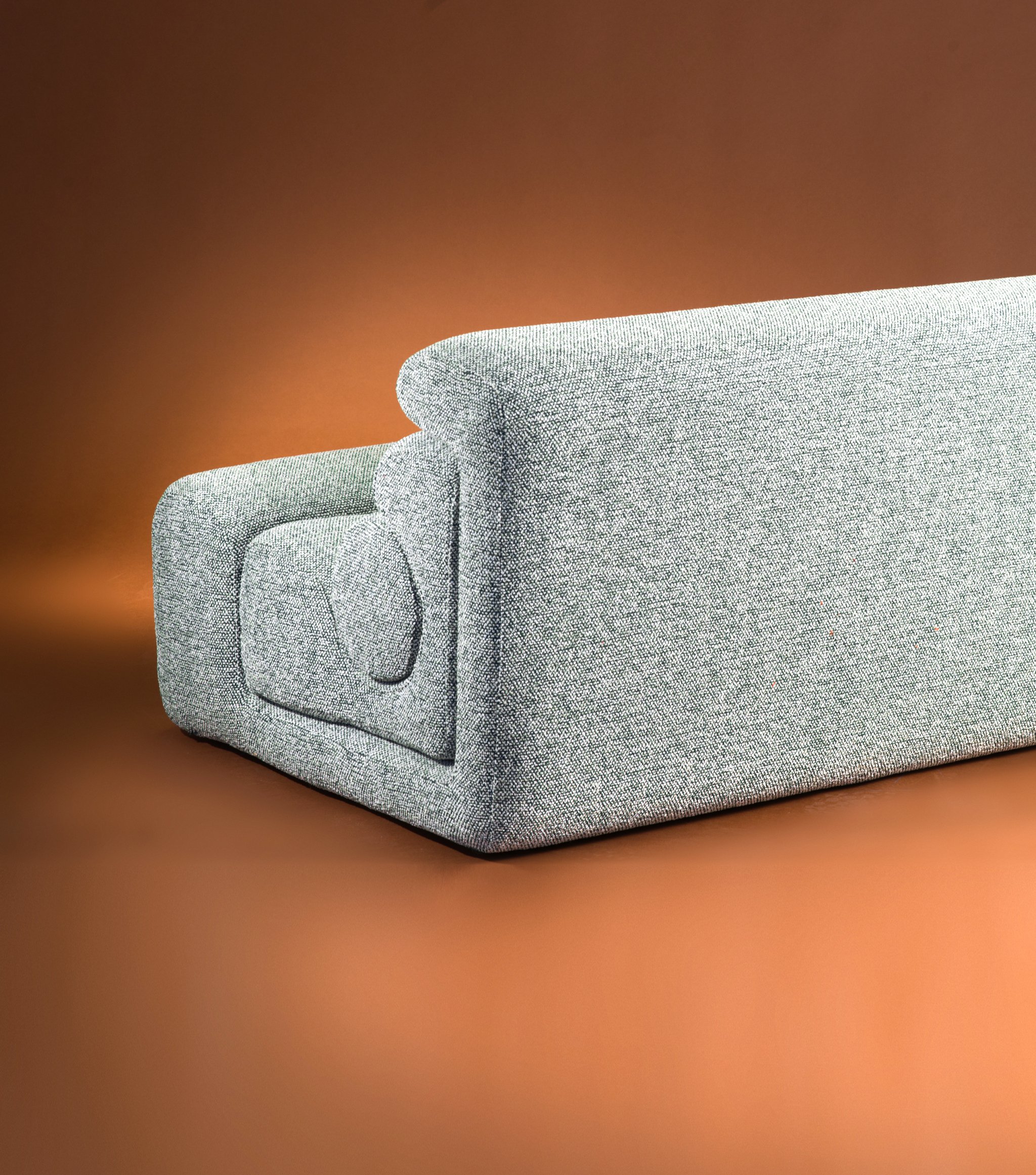 Bois, mousse, tissu en coton ‘Moss’ de chez Kvadrat.