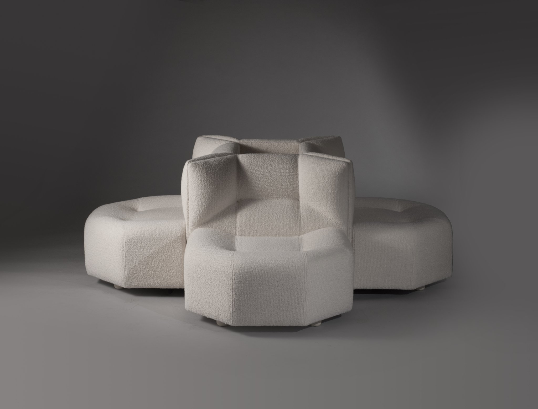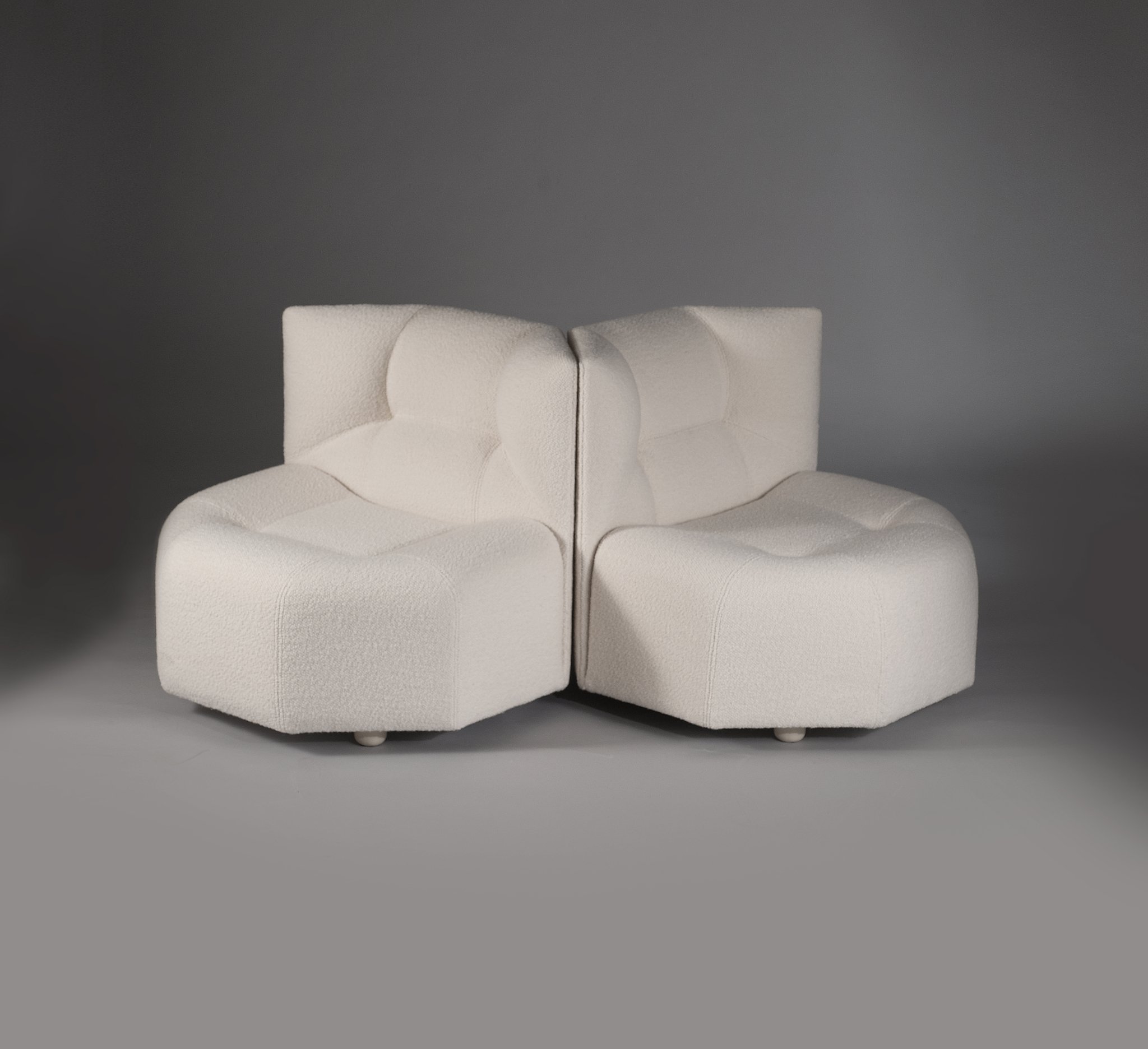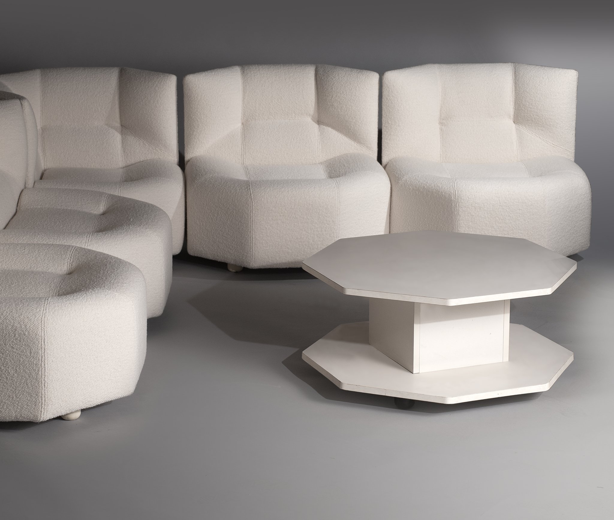 Ensemble de chauffeuses et tables basse de Bernard Govin, modèle Octa.