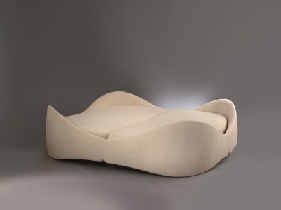 Canapé composé de huit chauffeuses, quatre tables rondes, une table ovale an neuf bouts de canapé. Totalement modulable.