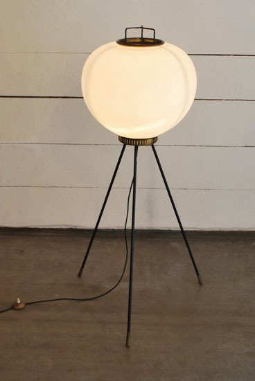 Lampadaire de Gaetano Sciolari.Laiton, métal laqué et verre opalin.Édition Stilnovo, Italie, circa 1950.