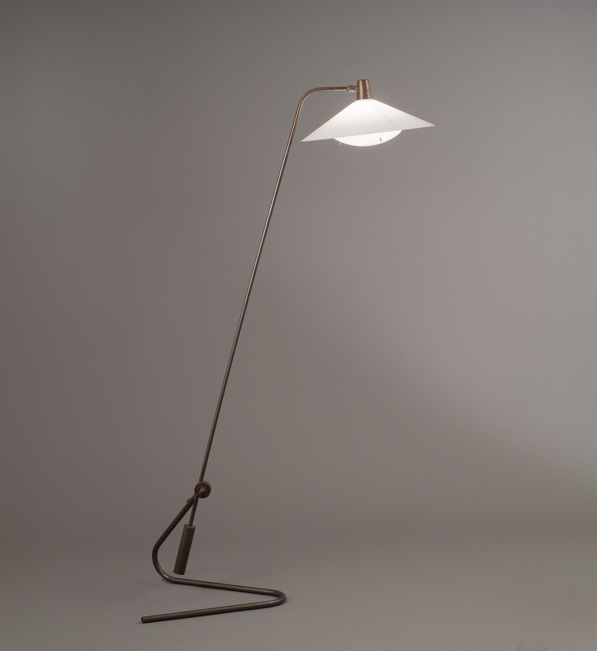 Lampadaire à balancier abat-jour perspex de Robert Mathieu