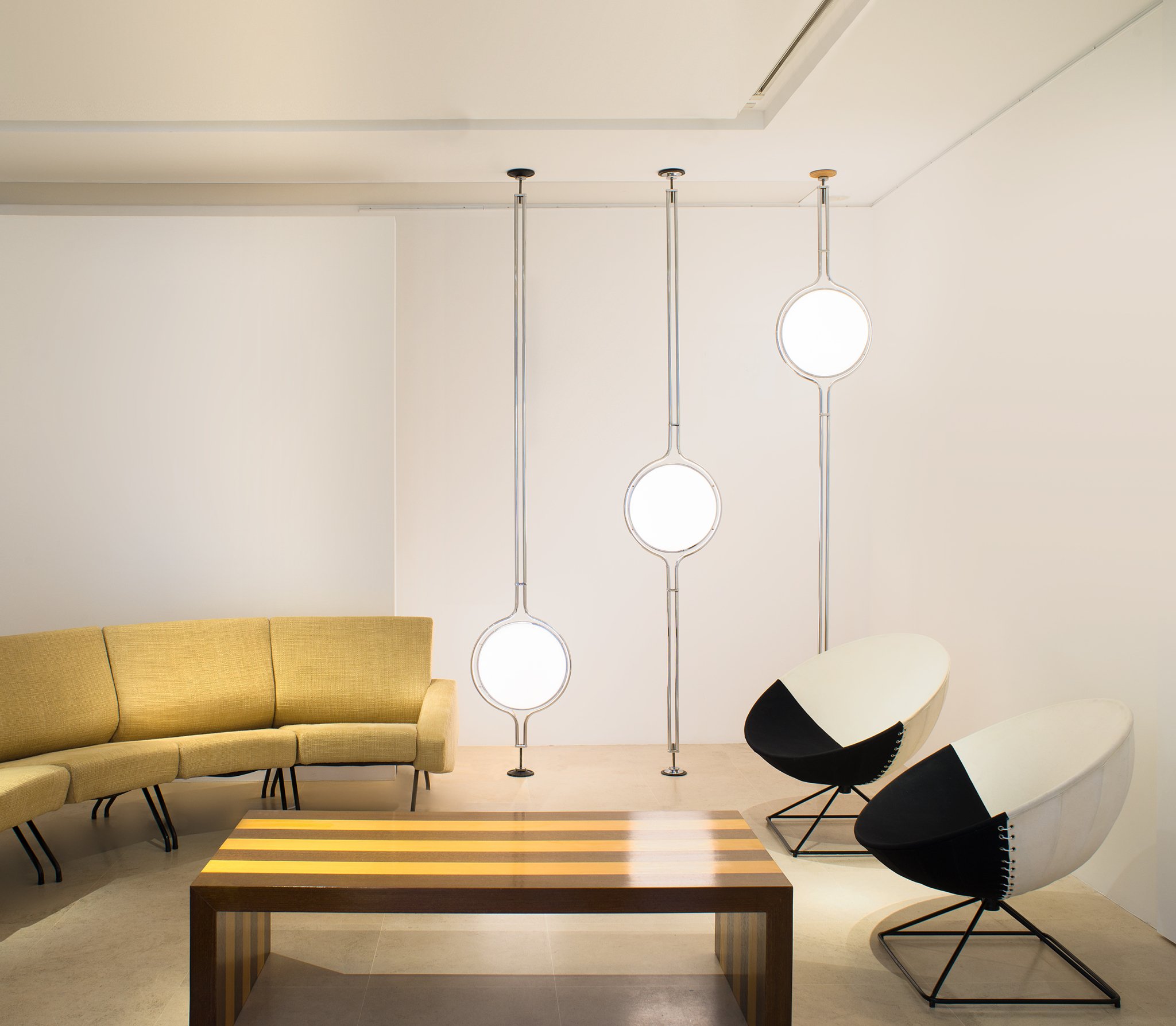 Lampadaire sol/plafond de Jean-pierre Garrault et Henri Delord.