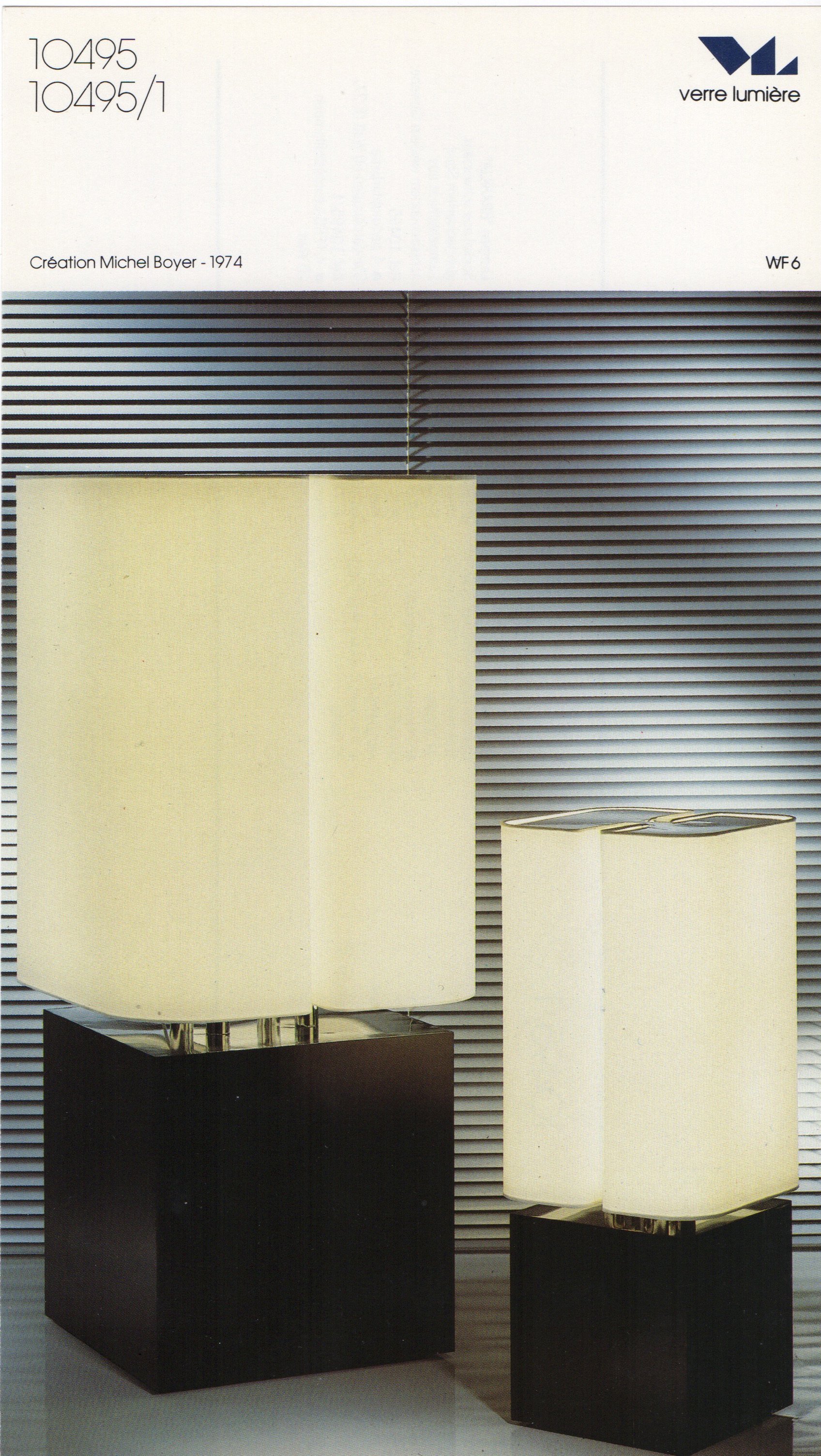 A l'origine cette lampe a été créée par Michel Boyer pour la résidence de l'ambassadeur de France à Brasilia au Brésil. S'en est suivi une petite édition chez Verre Lumière.