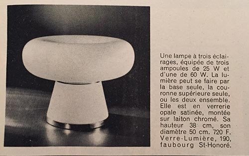 Lampe de Verre Lumiere.Verre opalin, laiton chromé.Edition Verre Lumière, France c. 1970.H. 38 cm ; Diam. 50 cm.