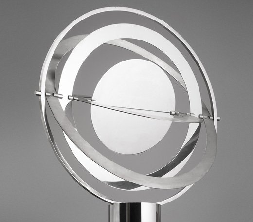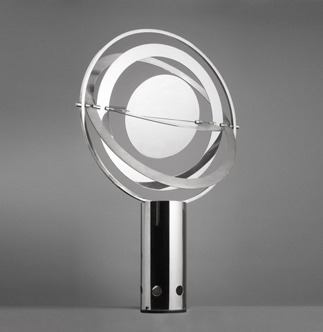 Grande lampe de Xavier-FéalAcier inoxydable brossé et poli miroirFrance, c. 1970H. 79 cm, diam. 50 cm