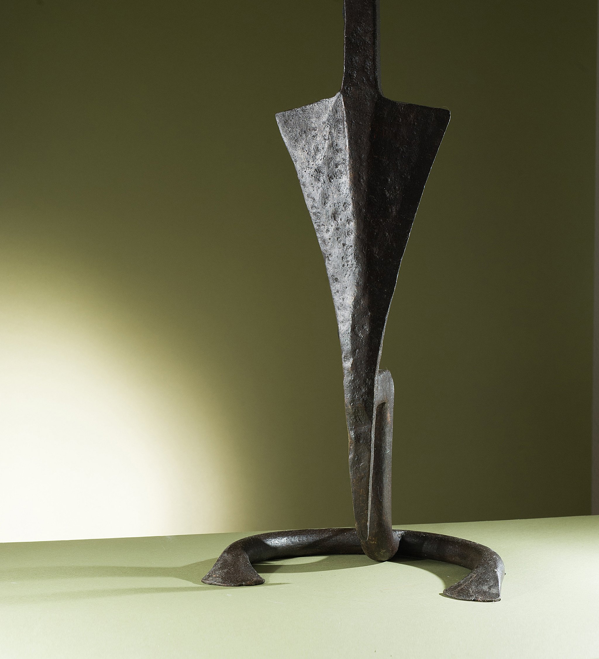 Les luminaires de Léopold Gest caractérisent parfaitement cette œuvre personnelle qui prend forme à la fin des années 1960. Il commence alors à créer ses premiers objets en métal à partir de fragments glanés dans le monde rural : morceaux de charrues, mors de chevaux, bêches et outils agricoles abandonnés. Ces éléments, découpés, recomposés et abrasés selon son intuition, deviennent lampes, bougeoirs ou lampadaires. Parfois évocations animales, parfois machines imaginaires, ces assemblages sont proches de l’esprit du ready-made, entre art et design et marquent le début d’une recherche où l’acier devient son matériau de prédilection.