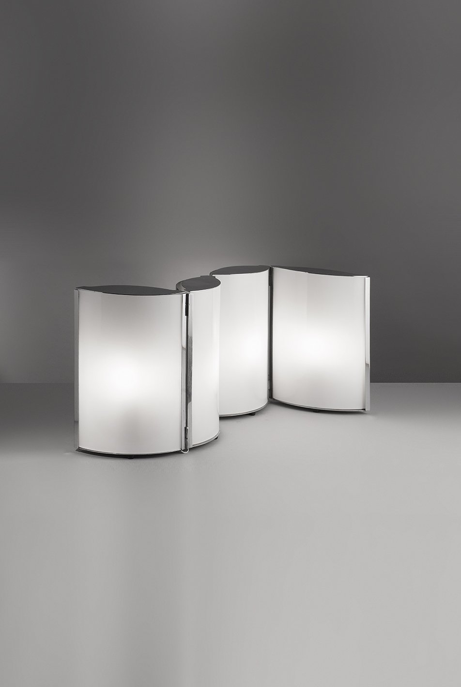 Métal chromé et verre opalin.