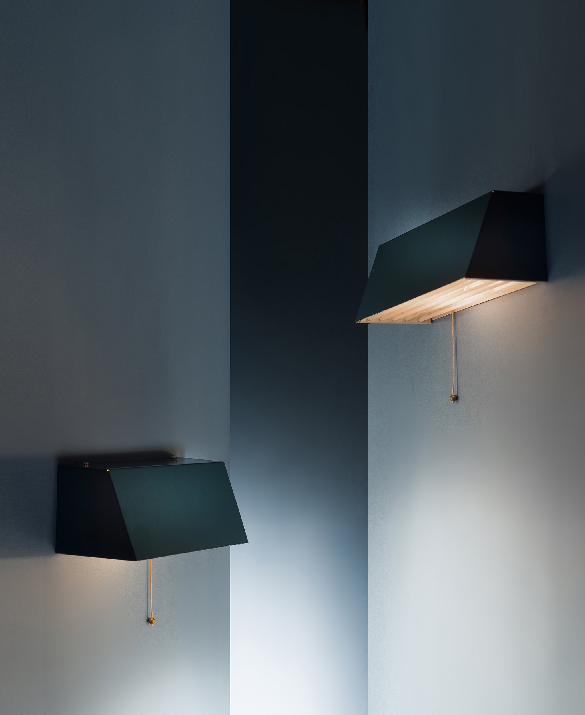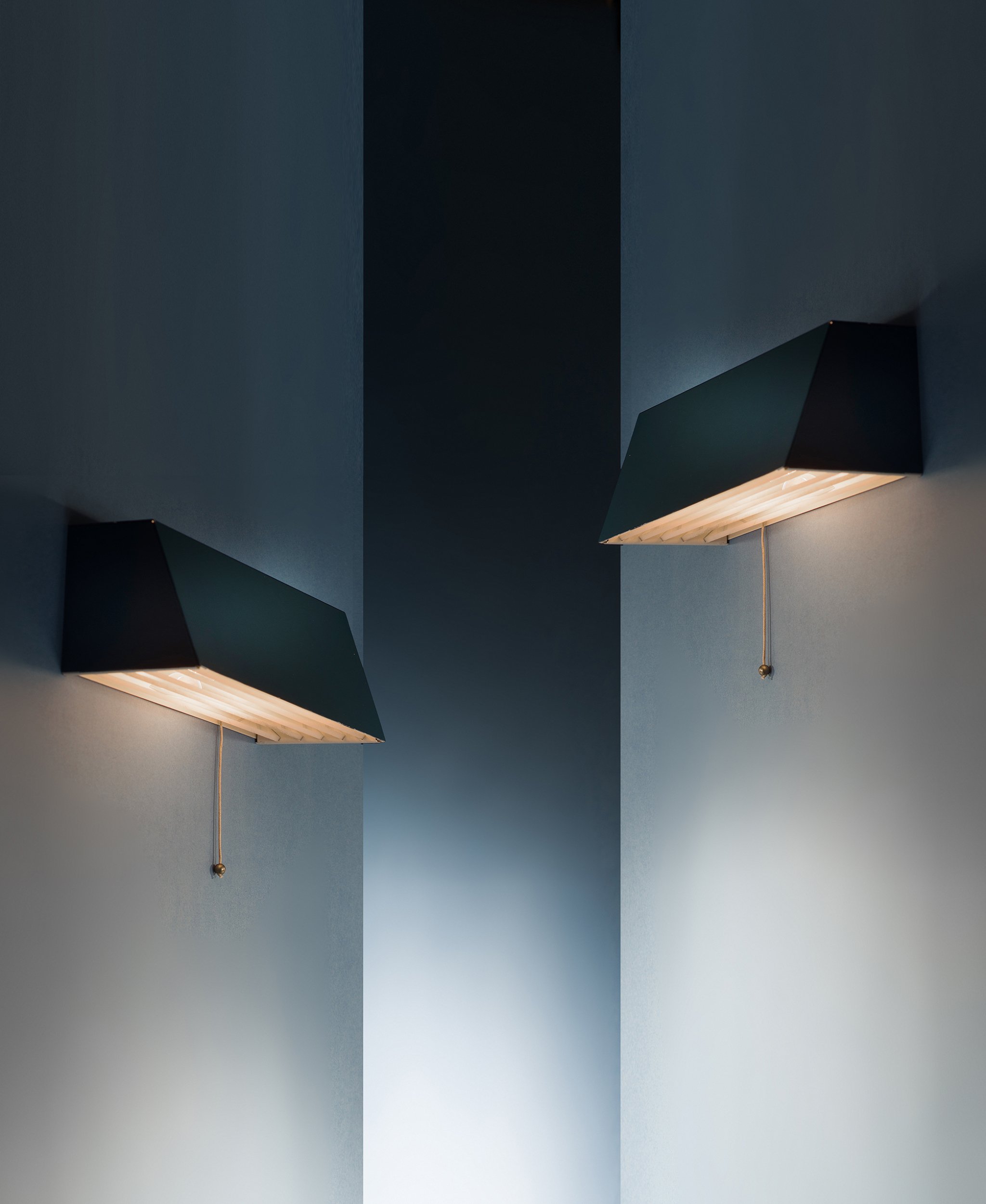 Paire d’appliques laquées bleu à volets de Jacques Biny.