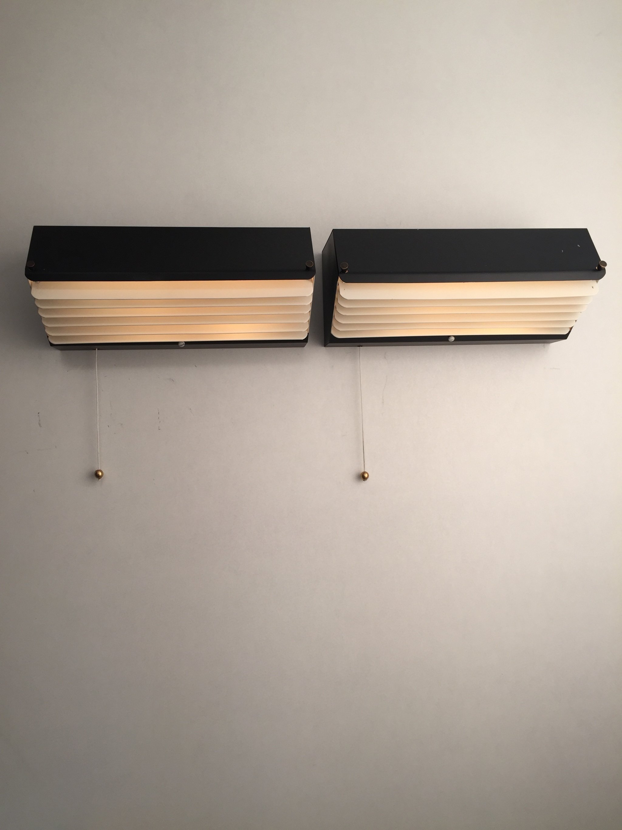 Paire d'appliques à volet noires et blanches de Jacques Biny