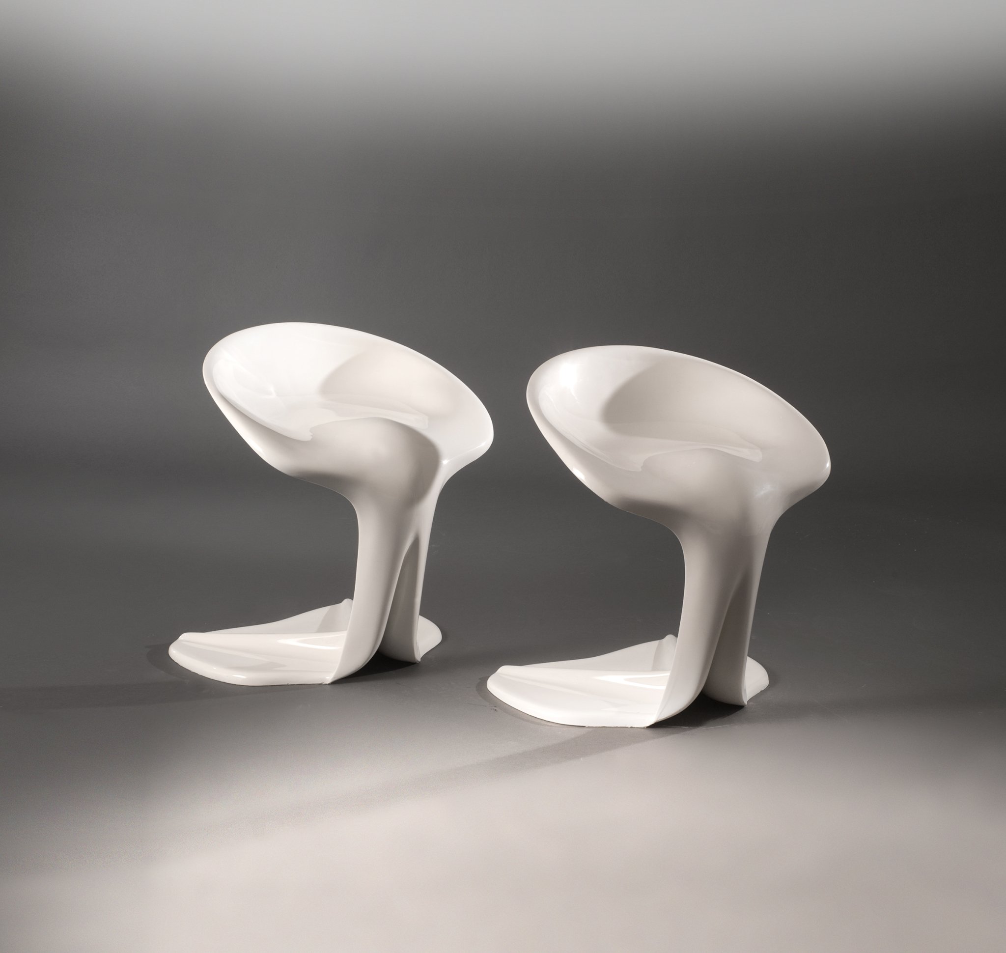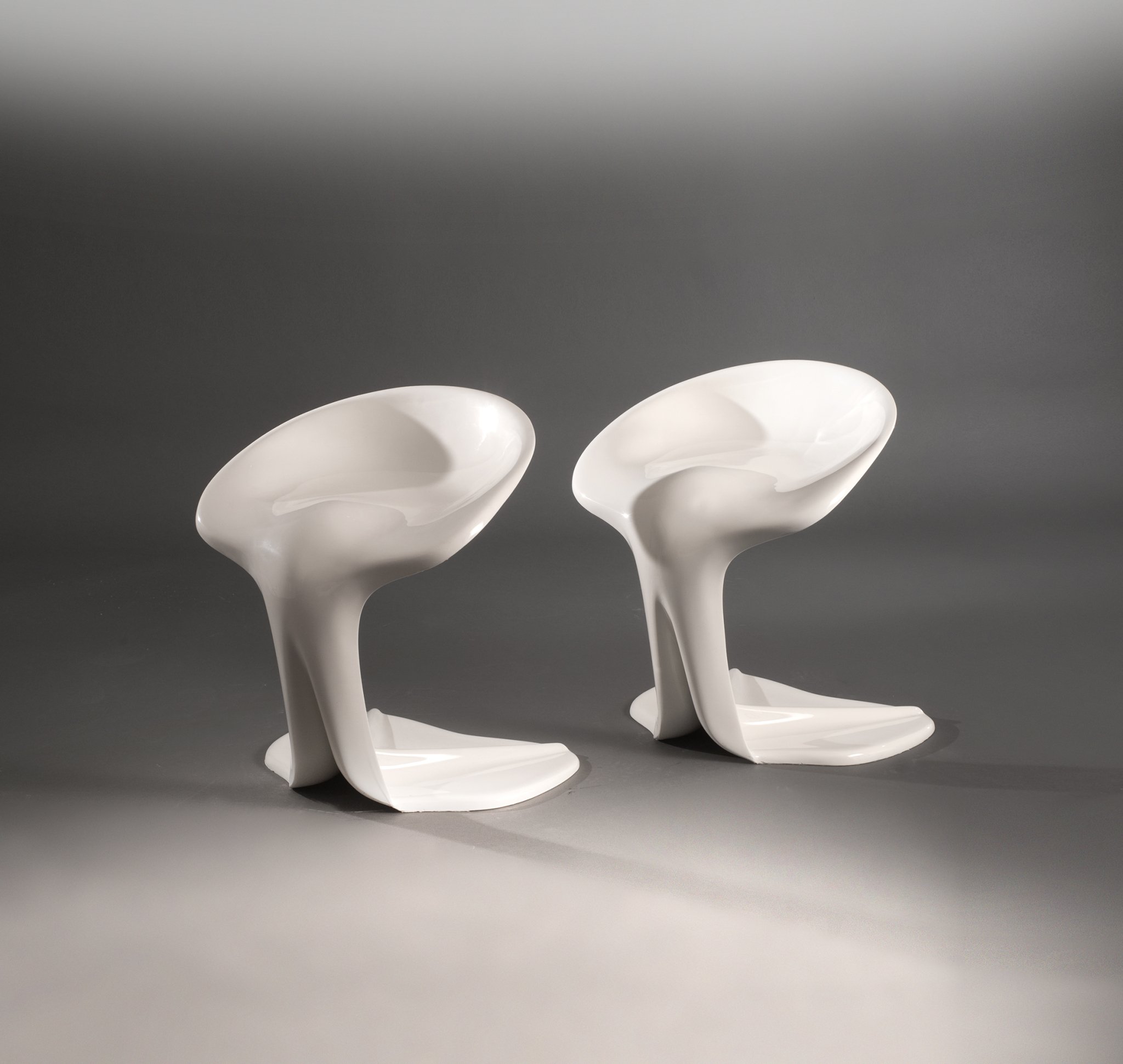 Paire de tabourets de Jean Dudon, modèle Selle.