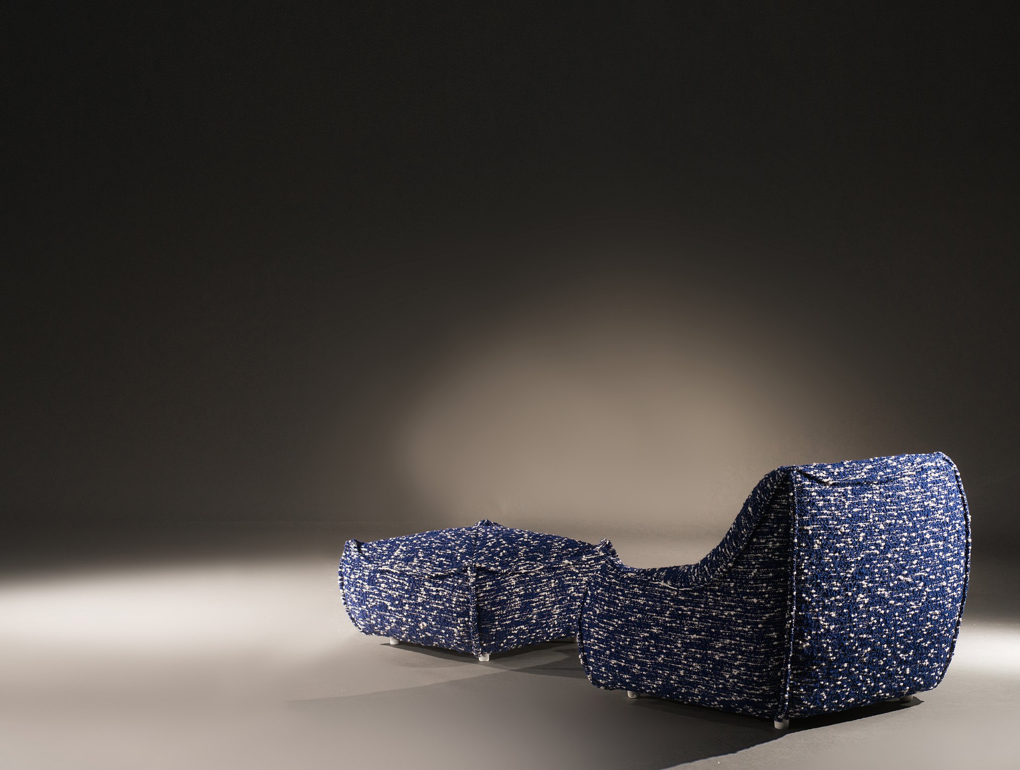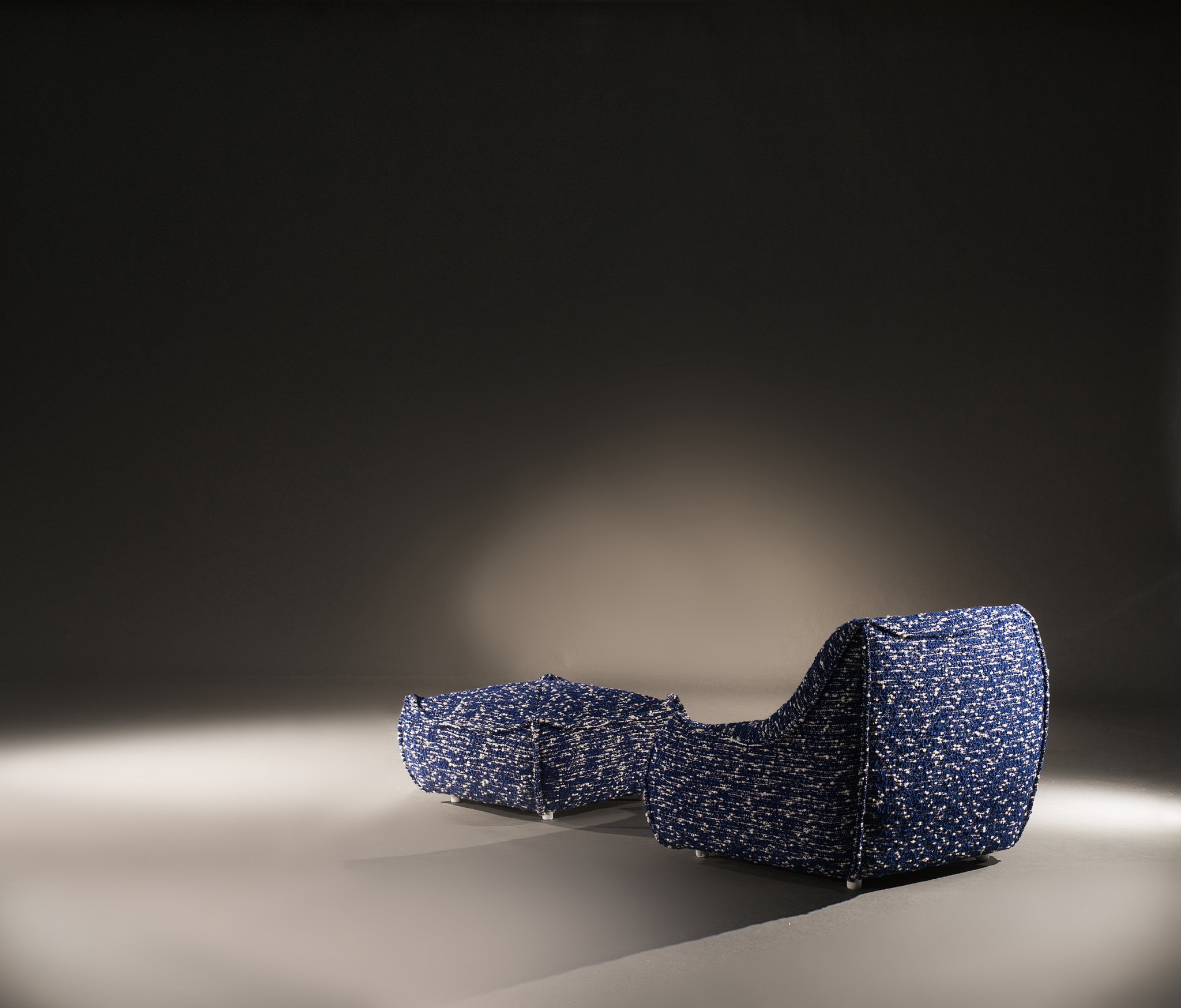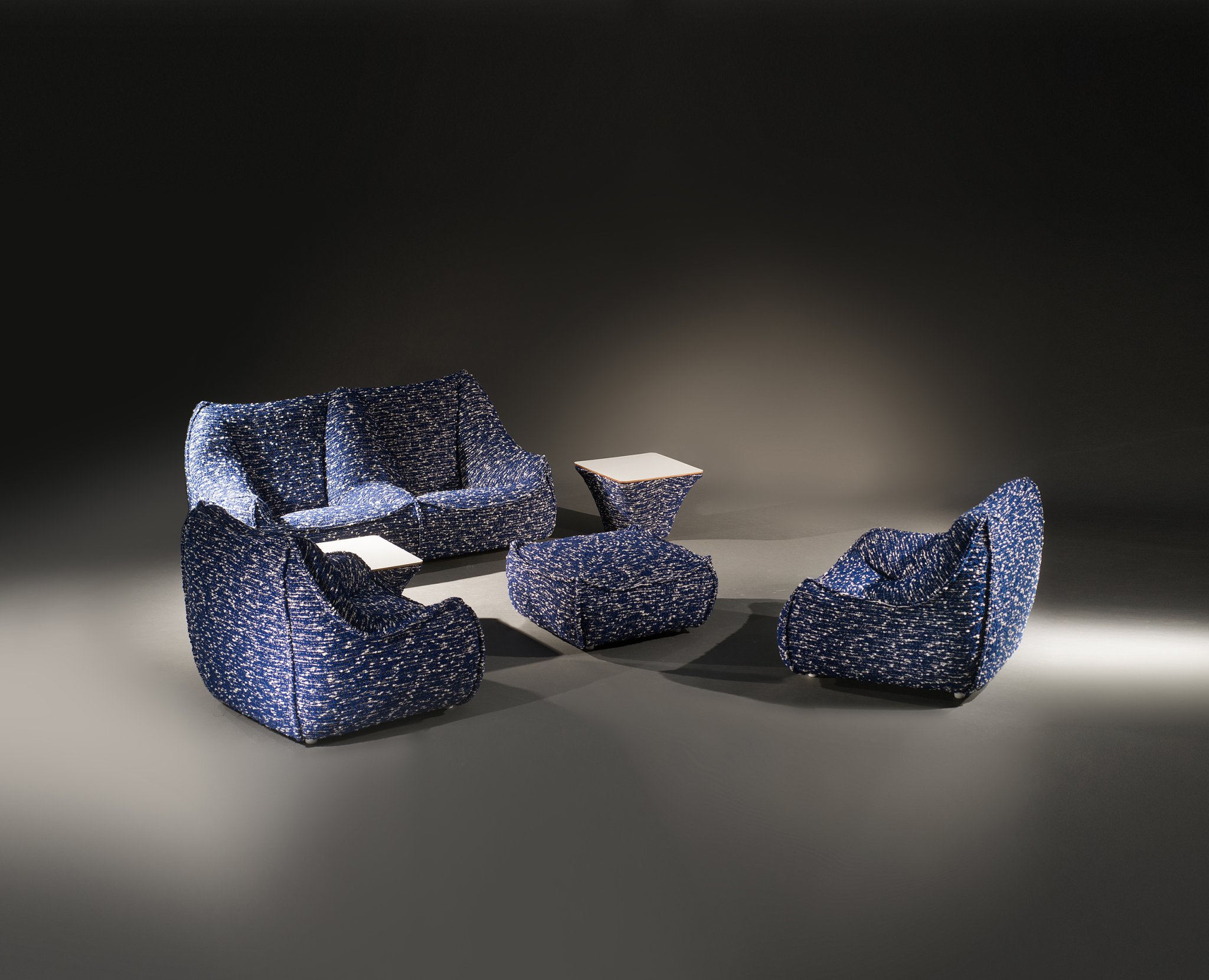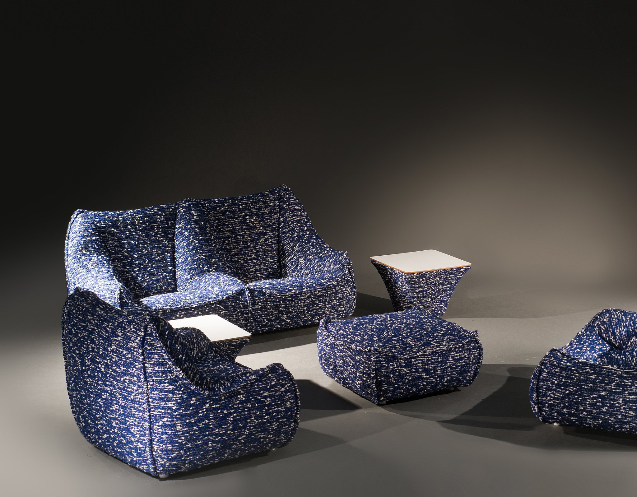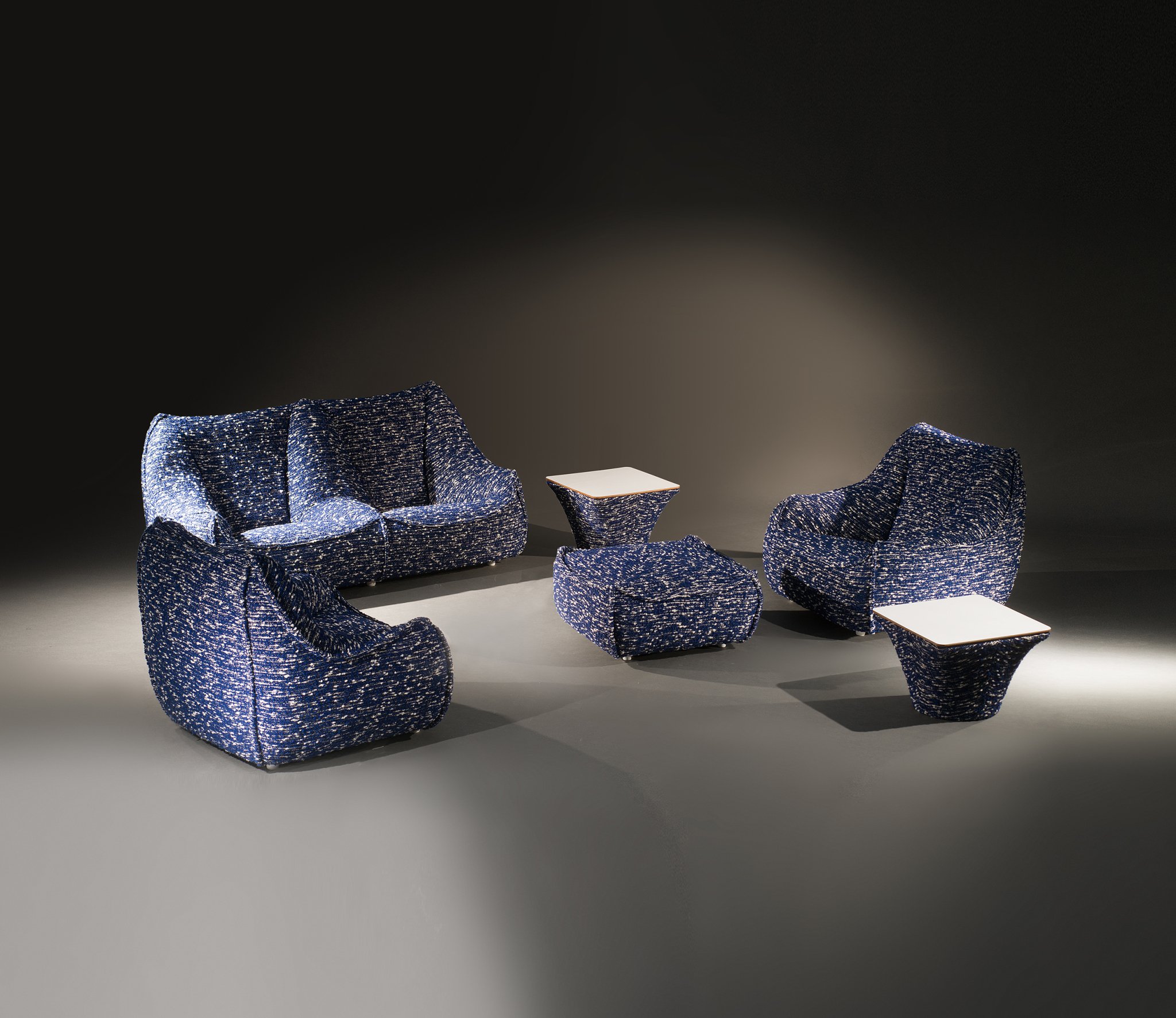 Composé d'un canapé et de 2 fauteuils et un ottoman.