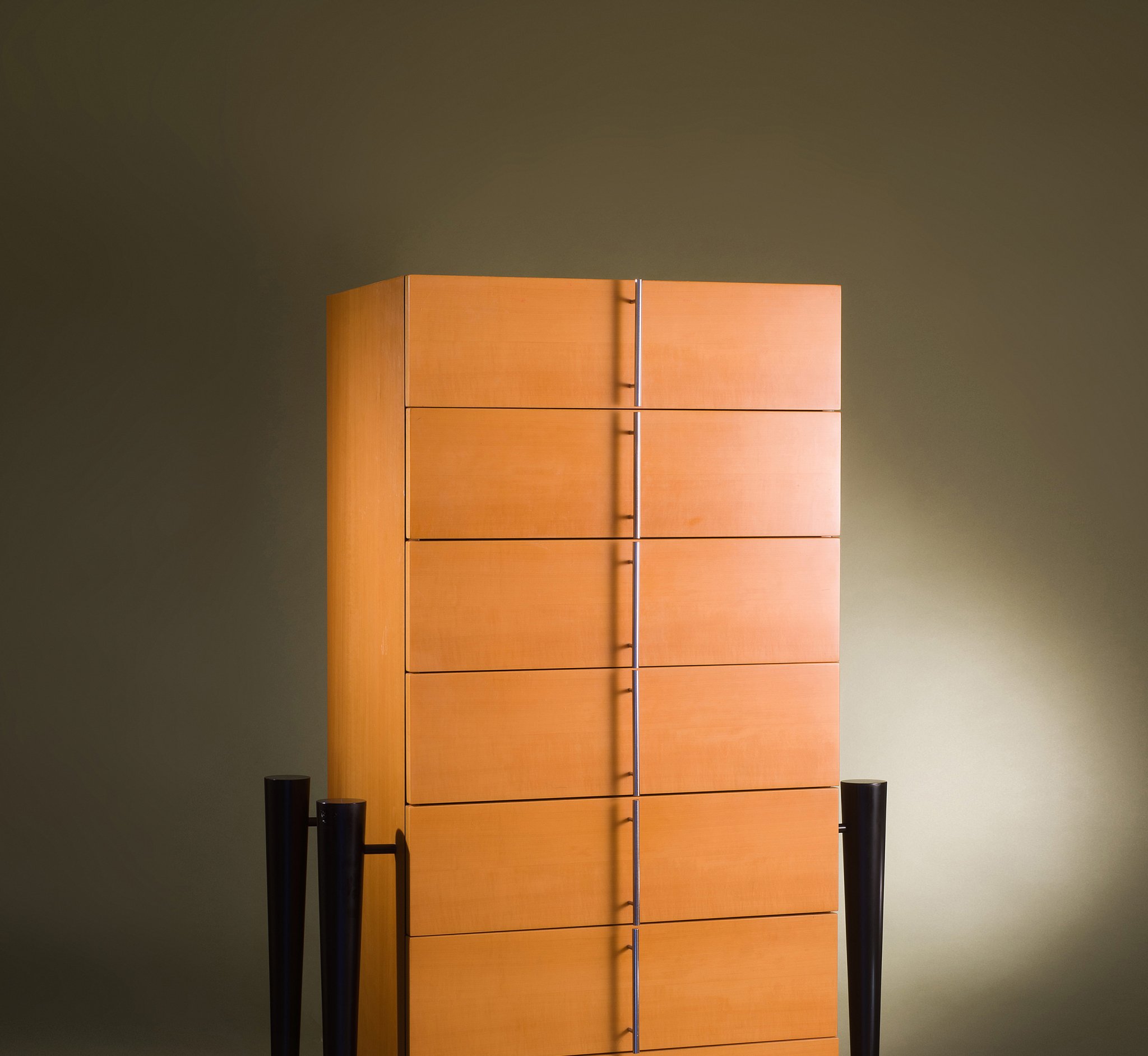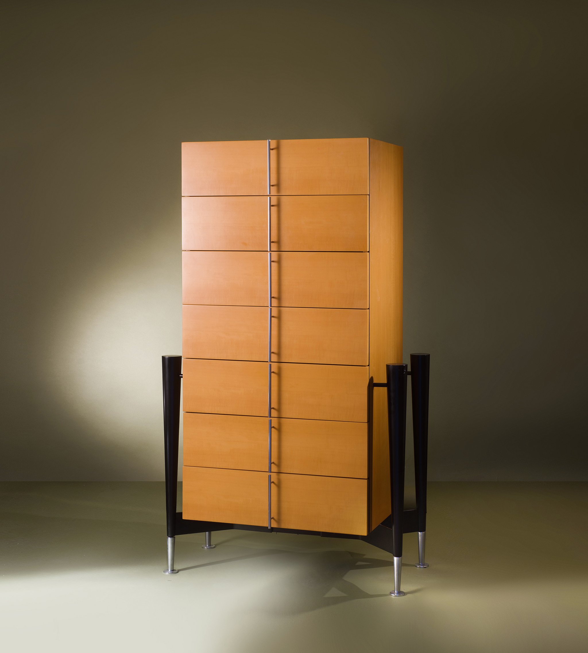 Placage de poirier et pieds en métal laqué noir et métal chromé