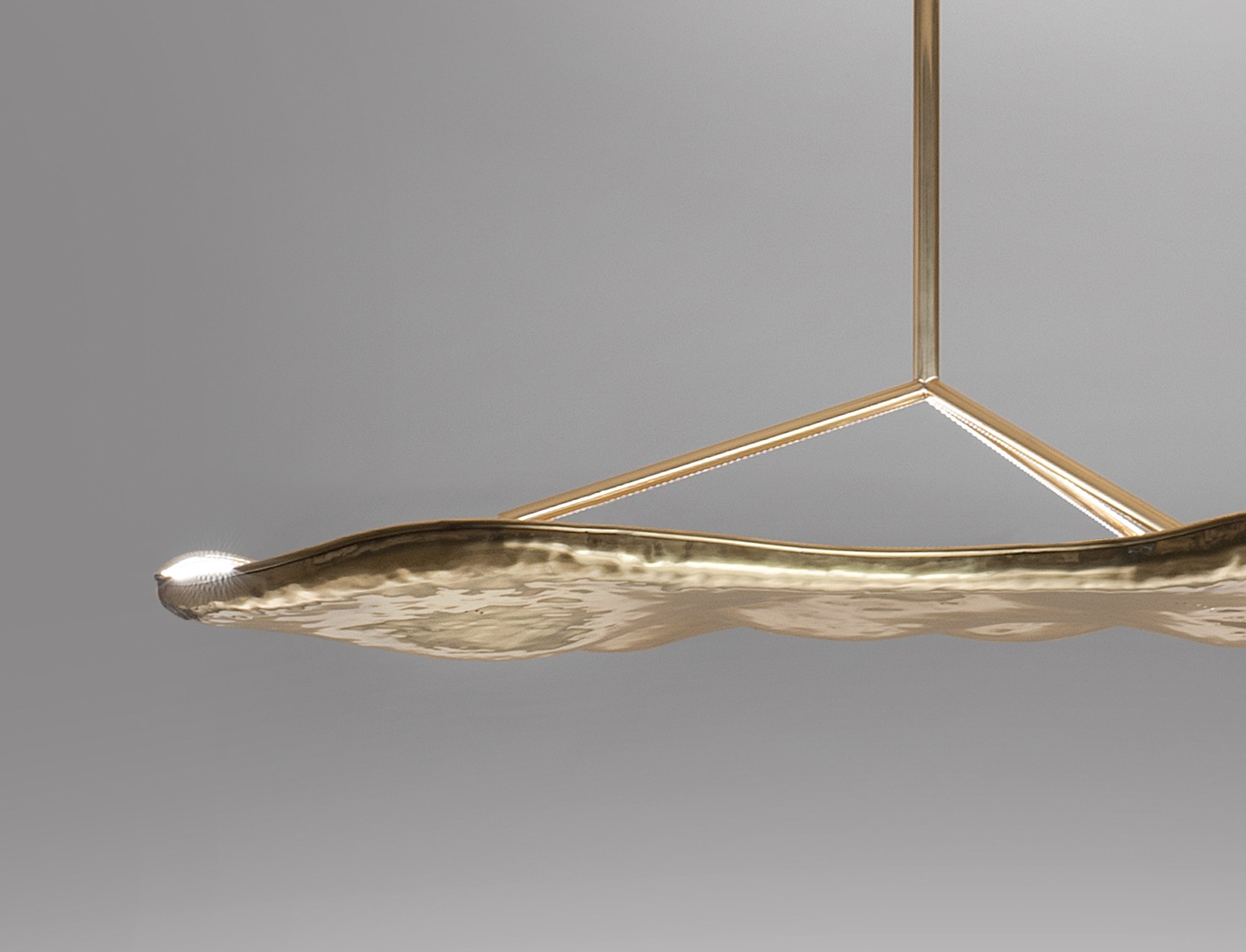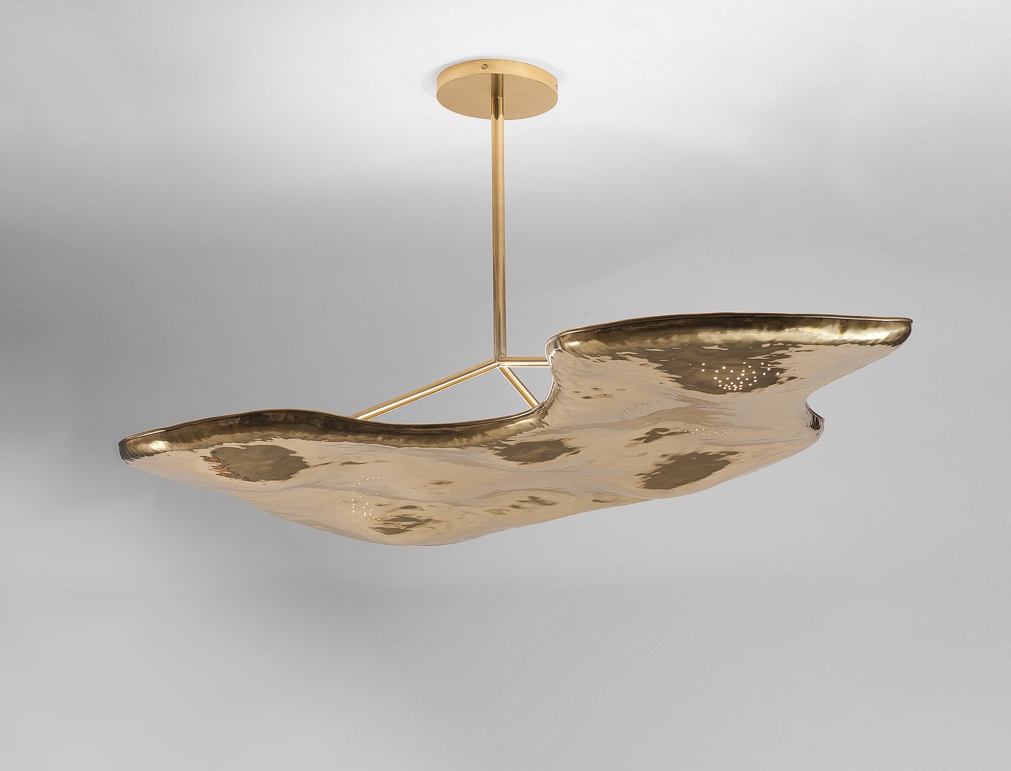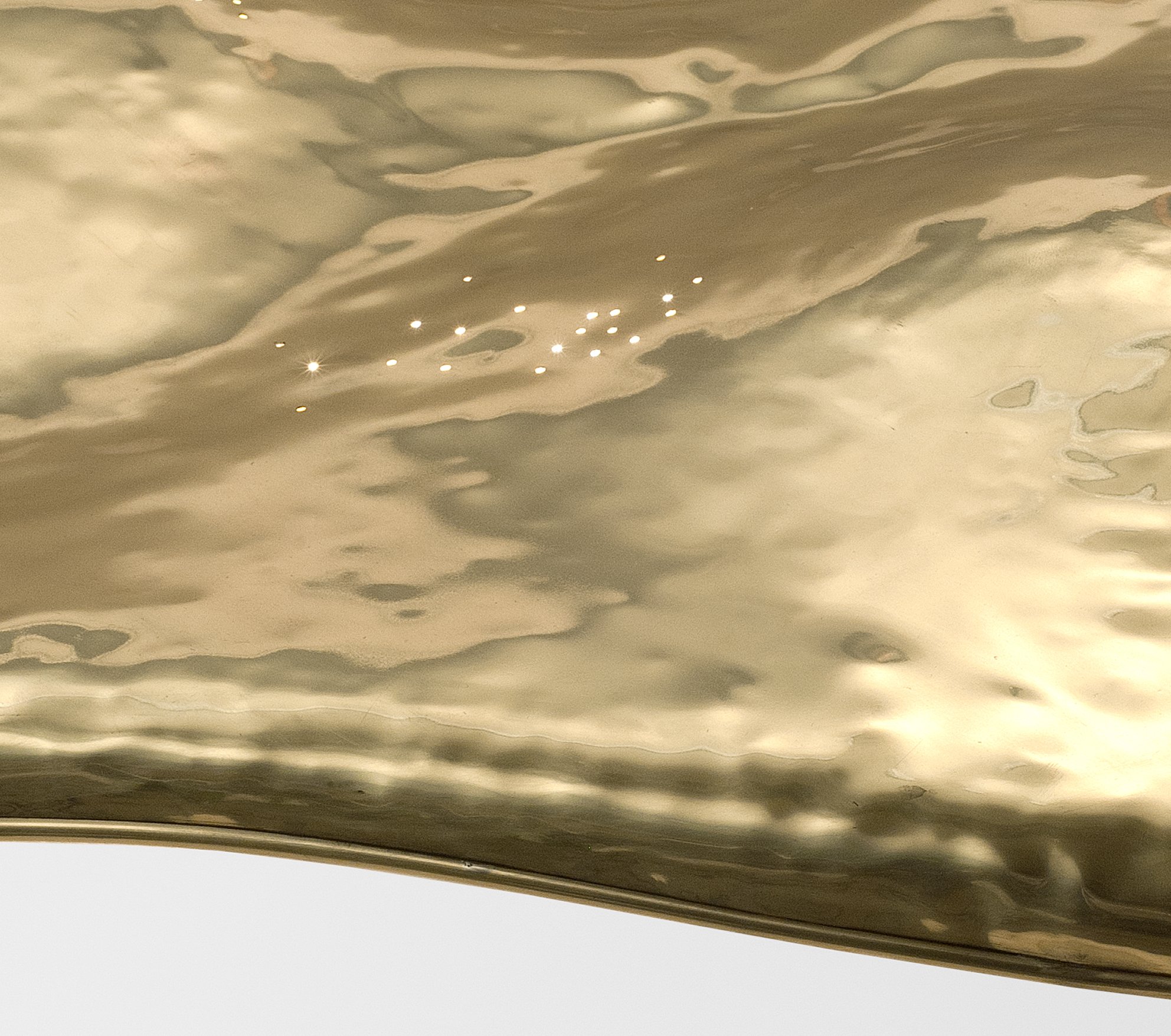 Laiton façonné et martelé, perforation, système d’éclairage led.