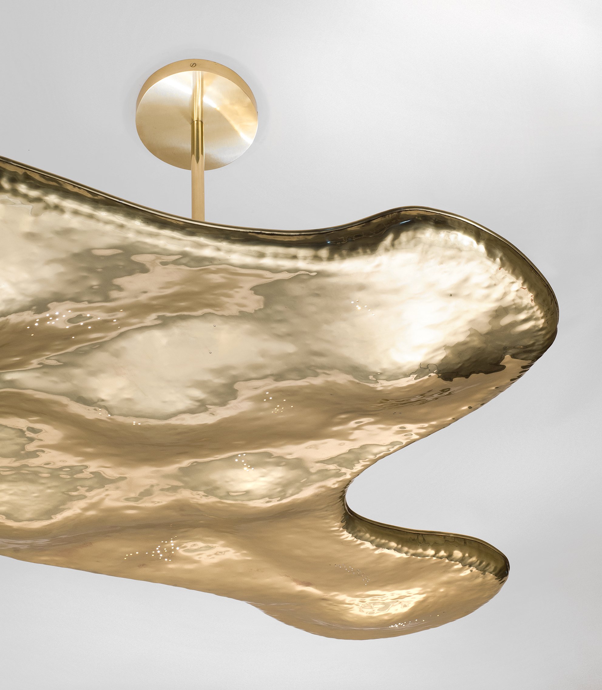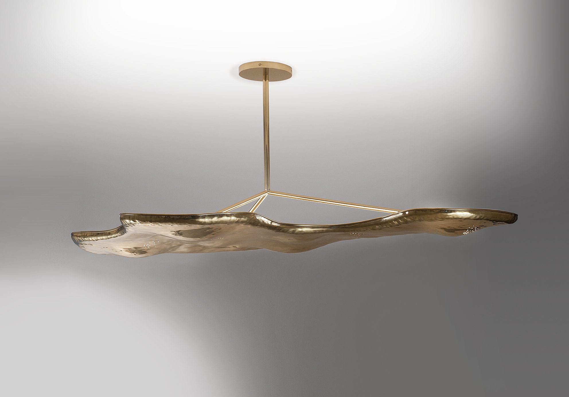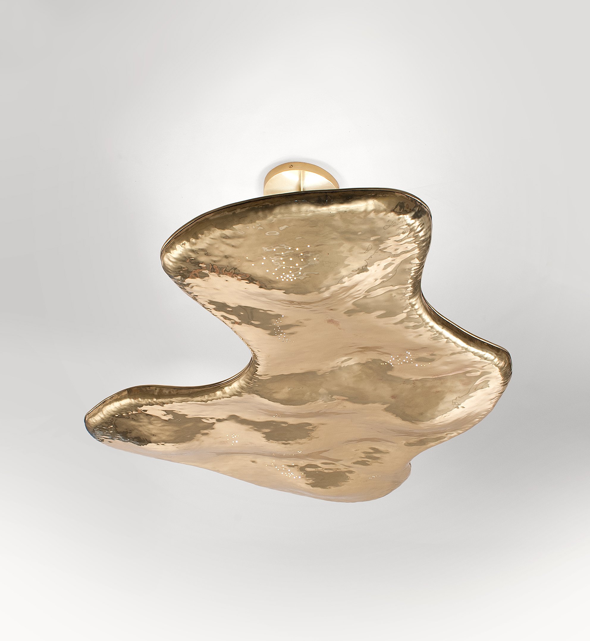 Laiton façonné et martelé, perforation, système d’éclairage led.