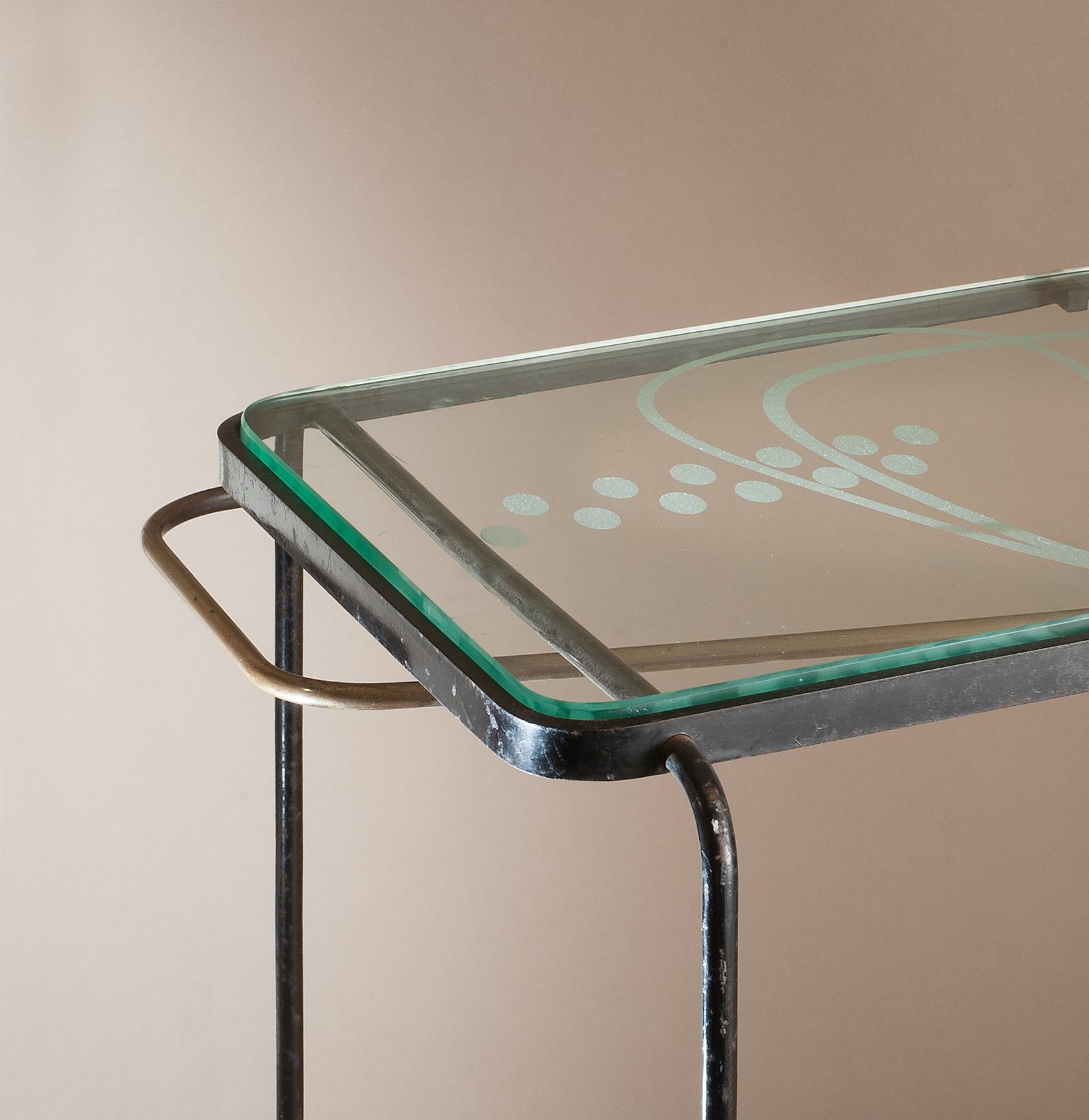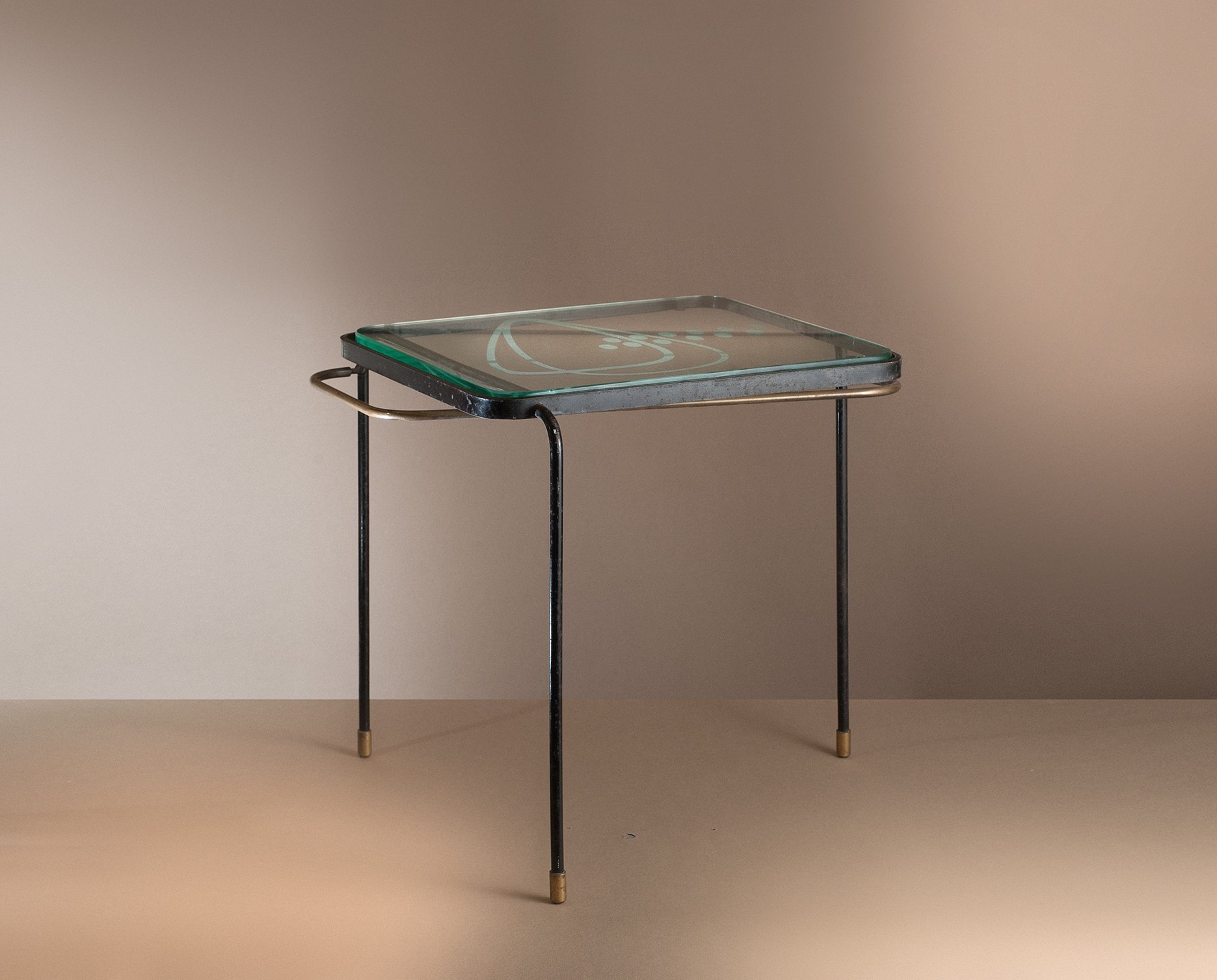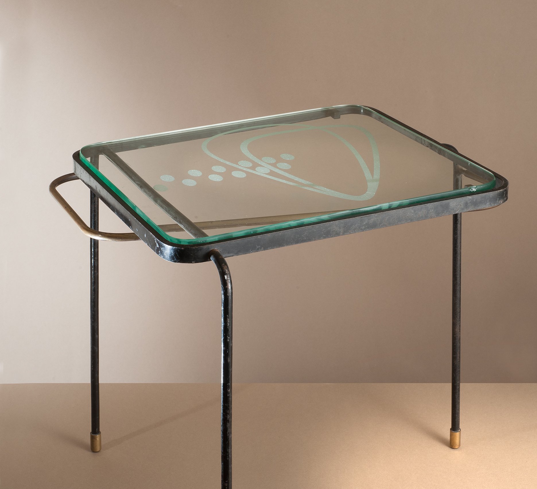 Laiton, métal laqué et verre.