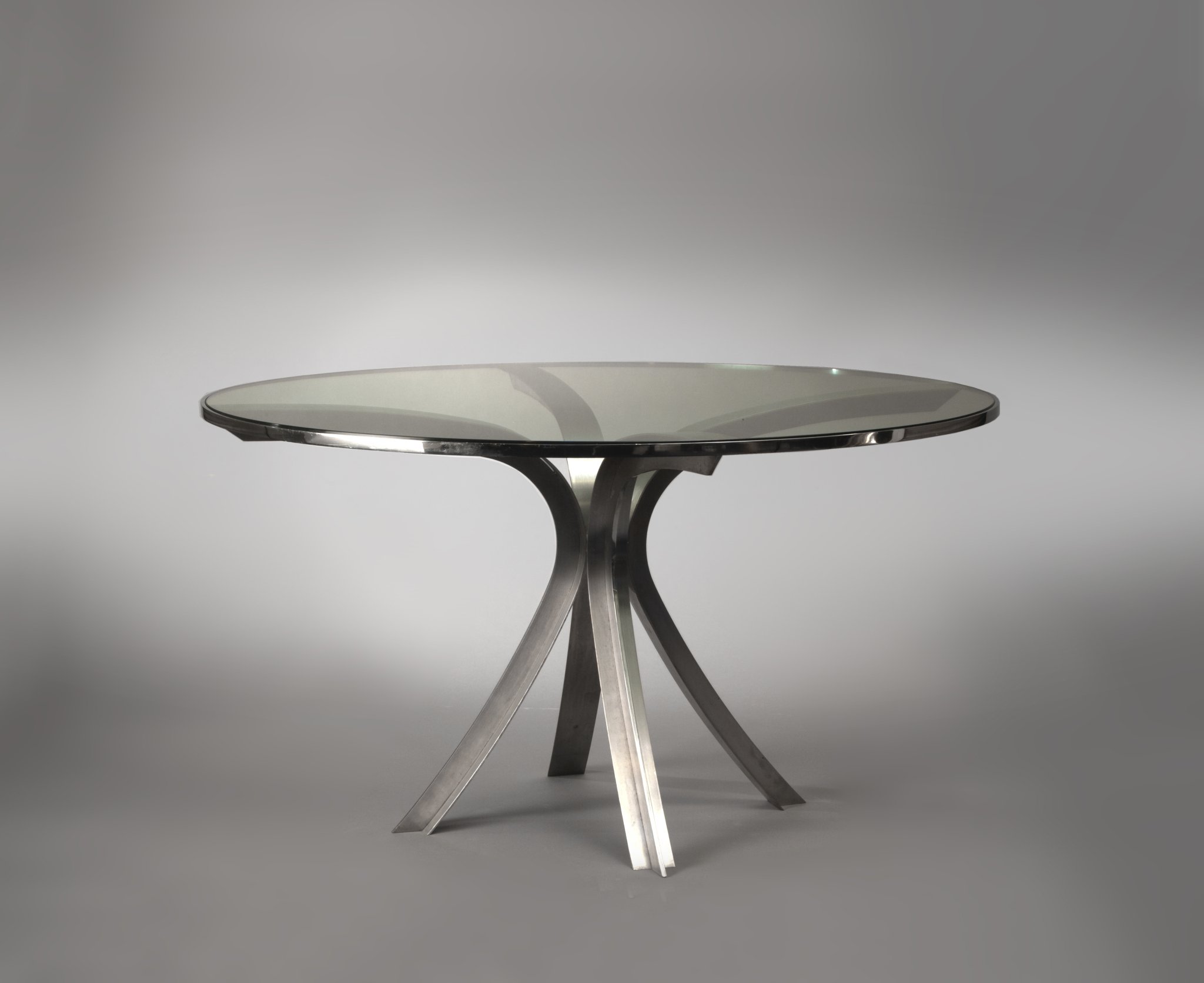 Grande table ronde avec plateau en verre de Xavier-Féal