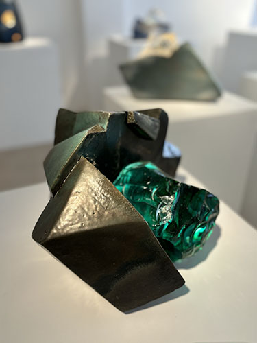 Modelage de plaques de grès. Bloc de verre.