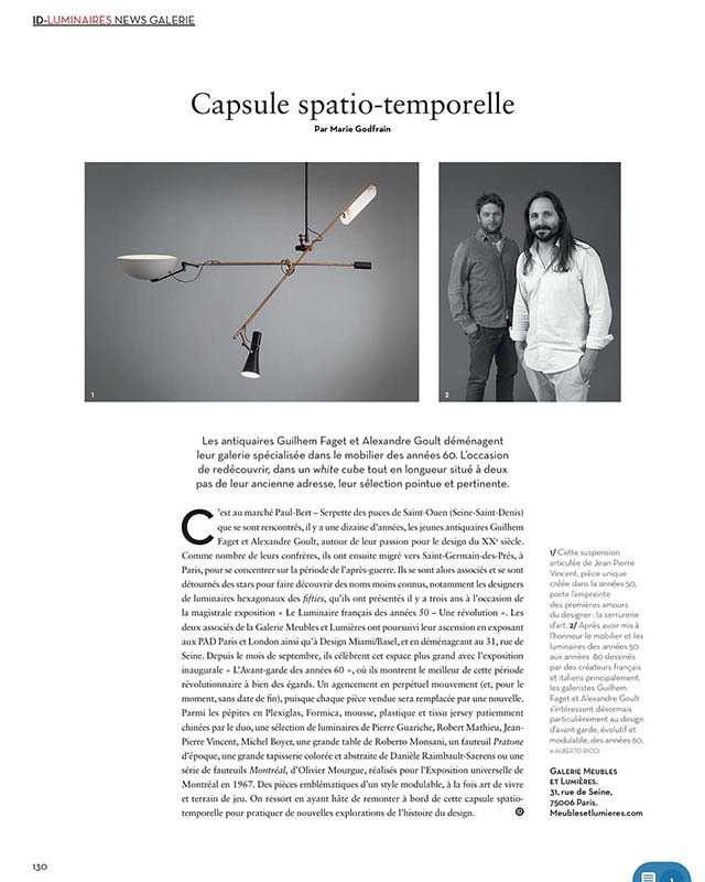 Les antiquaires Guilhem Faget et Alexandre Goult déménagement leur galerie spécialisée dans le mobilier des années 60. L’occasion de redécouvrir, dans un white cube tout en longueur situe à deux pas de leur ancienne adresse. leur sélection pointue et pertinente.