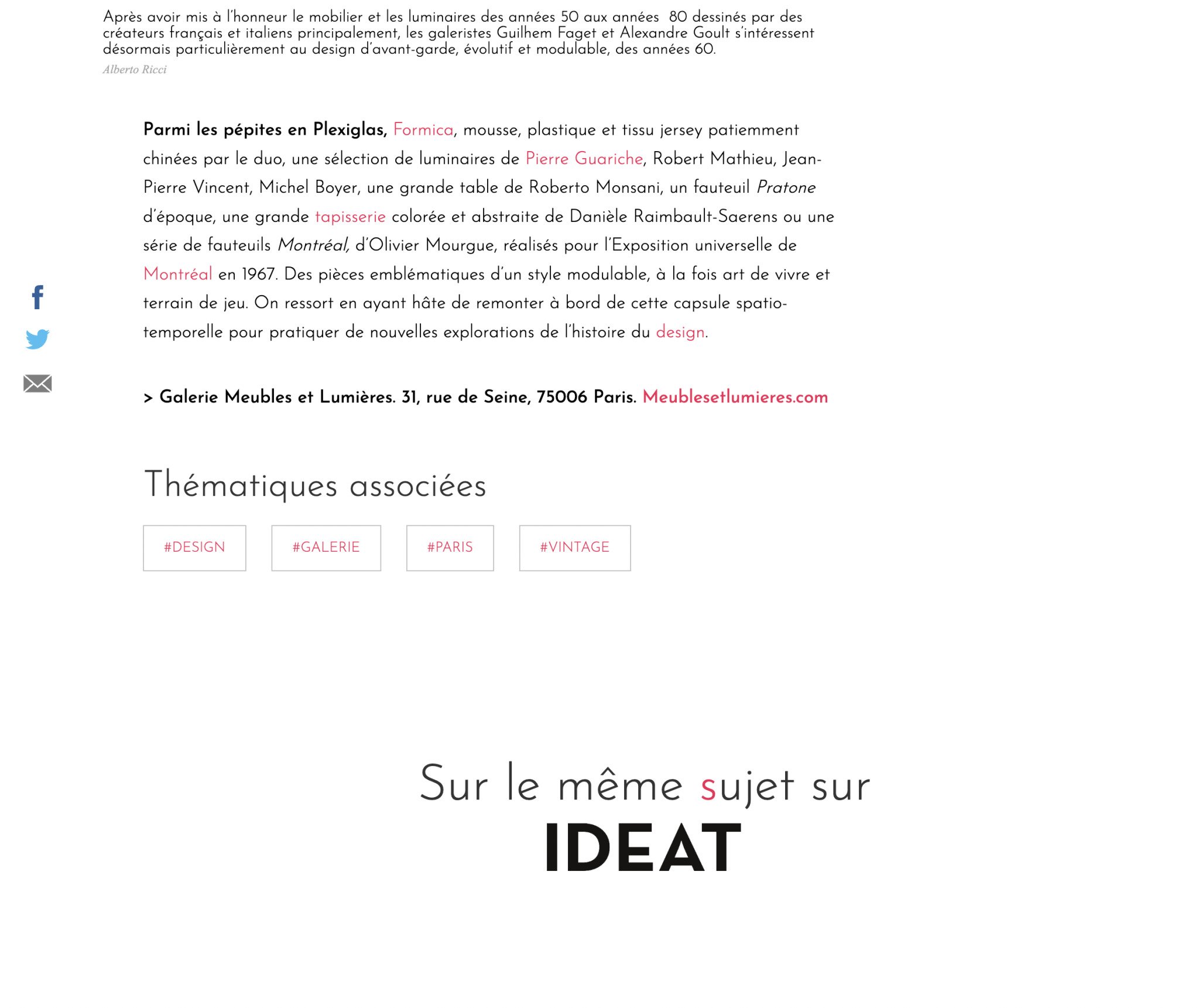 > Galerie Meubles et Lumières. 31, rue de Seine, 75006 Paris. Meublesetlumieres.com