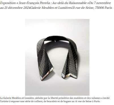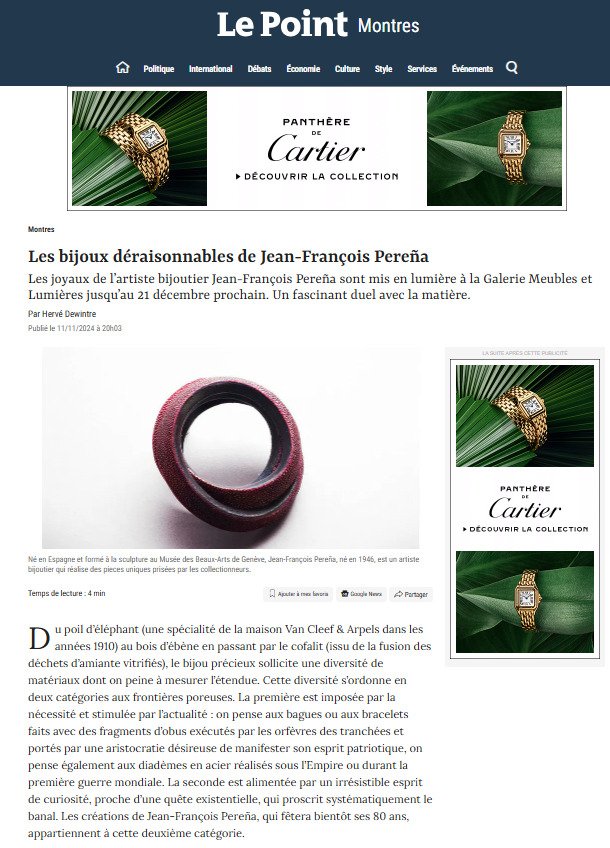 Né en Espagne et formé à la sculpture au Musée des Beaux-Arts de Genève, Jean-François Pereña, né en 1946, est un artiste bijoutier qui réalise des pièces uniques prisées par les collectionneurs.