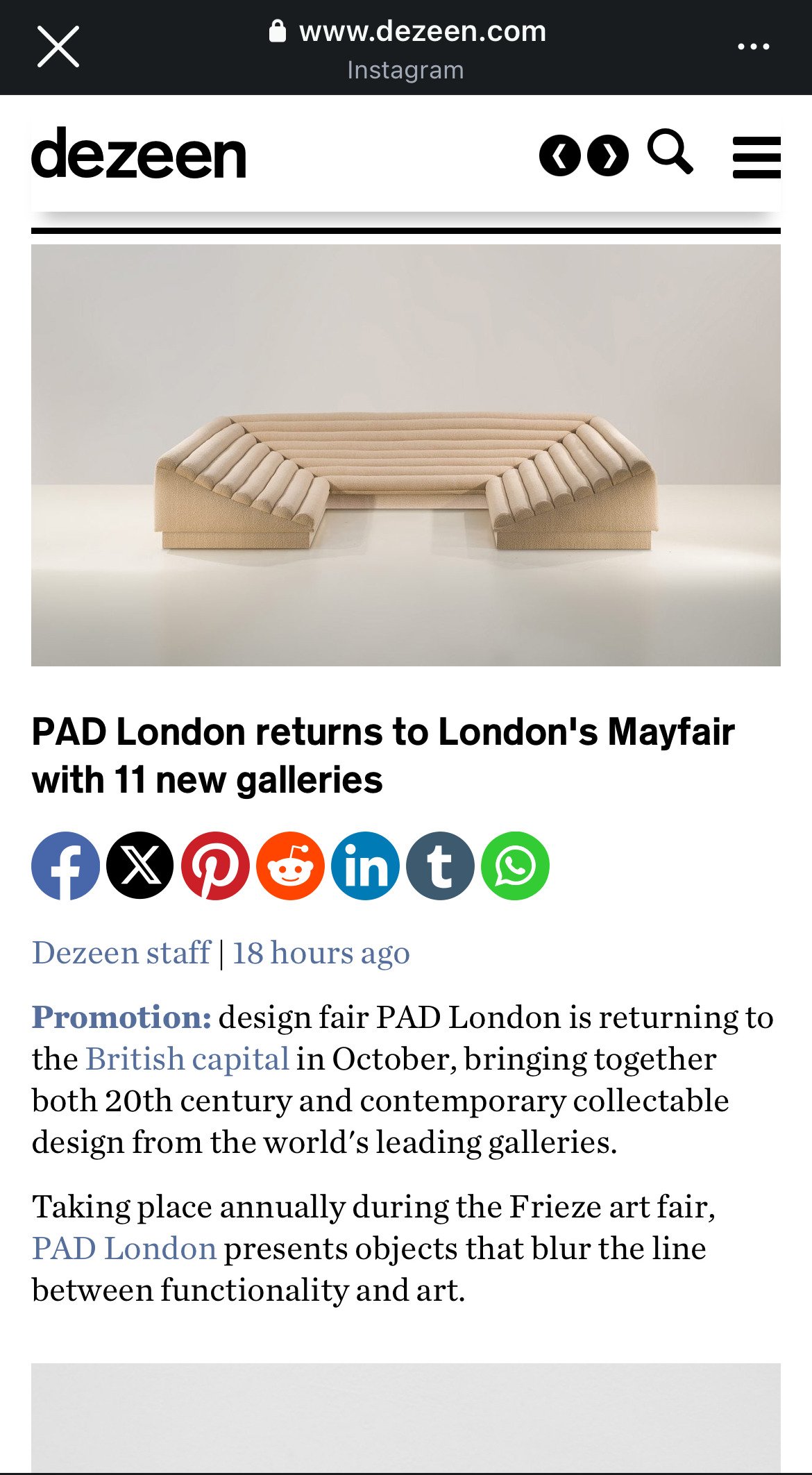 PAD London takes place from 14 to 19 October 2025 at Berkeley Square, Mayfair,london. See Dezeen Events Guide for an up-to-date list of architecture and design events taking place around the world.