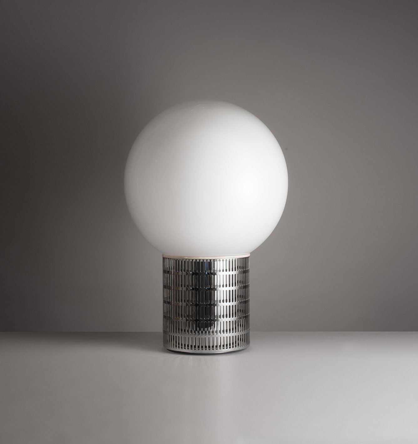 Chrome-plated metal and opal glass.