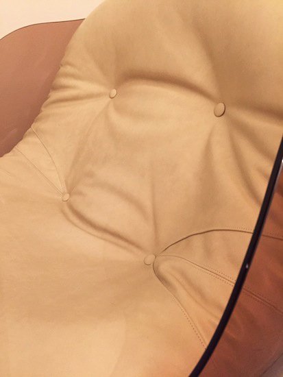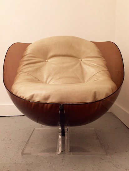 Leather, chrome-plated metal and plexiglas.